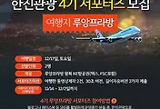 티웨이항공이 티나는 여행단 7기를 모집하고 있습니다. 선발된 2인의 블로거는 2박 4일 일정으로 세부를 여행하고 돌아와 7개 이상의 여행후기 포스팅을 하게 됩니다. 왕복항공권(대구-세부) 1매, 경비 30만원을 지원하는 빵빵한 혜택 때문인지 벌써부터 경쟁이 치열하군요. 해외여행에 관심있는 독자분이라면 얼른 지원해보세요!