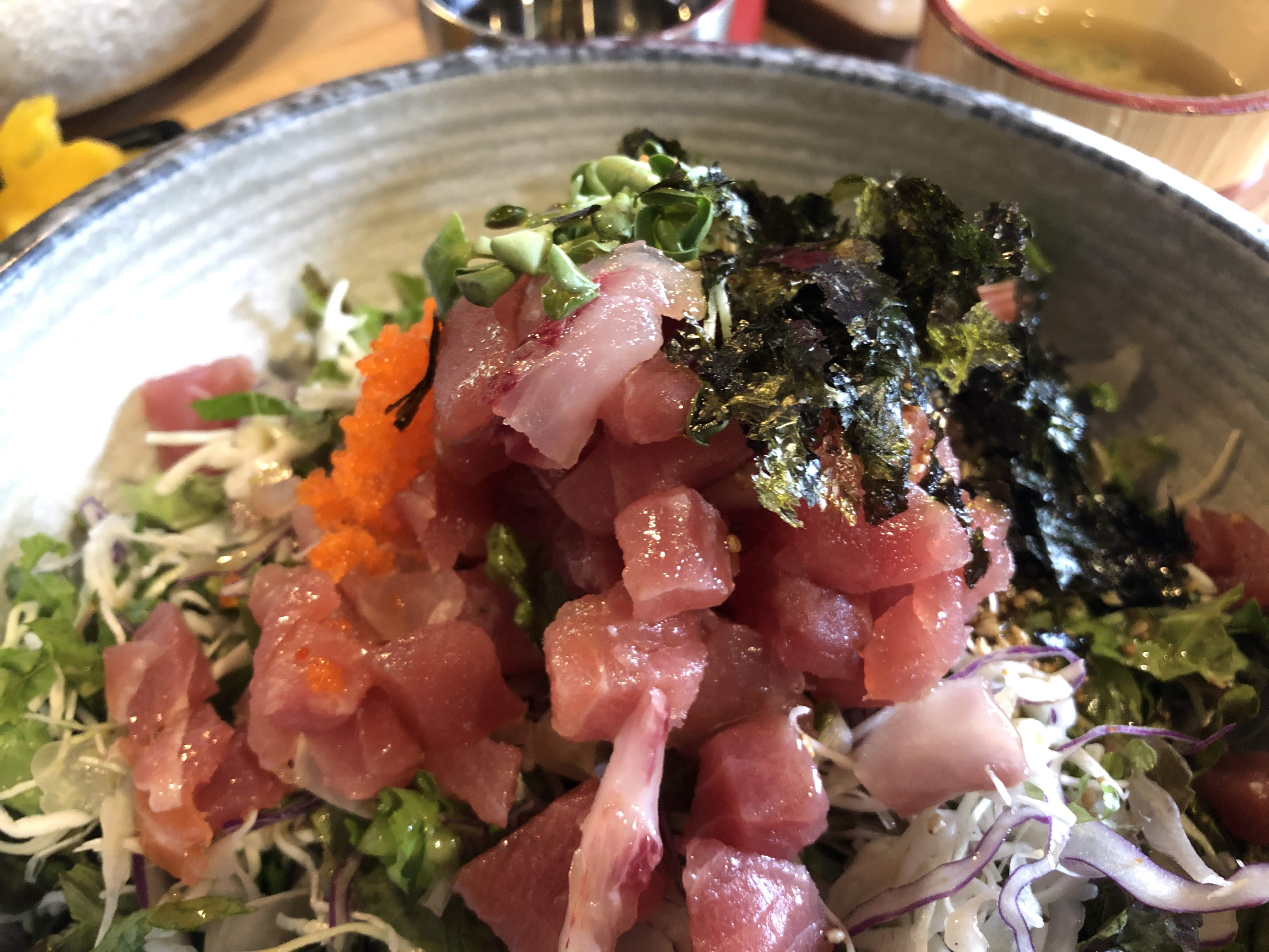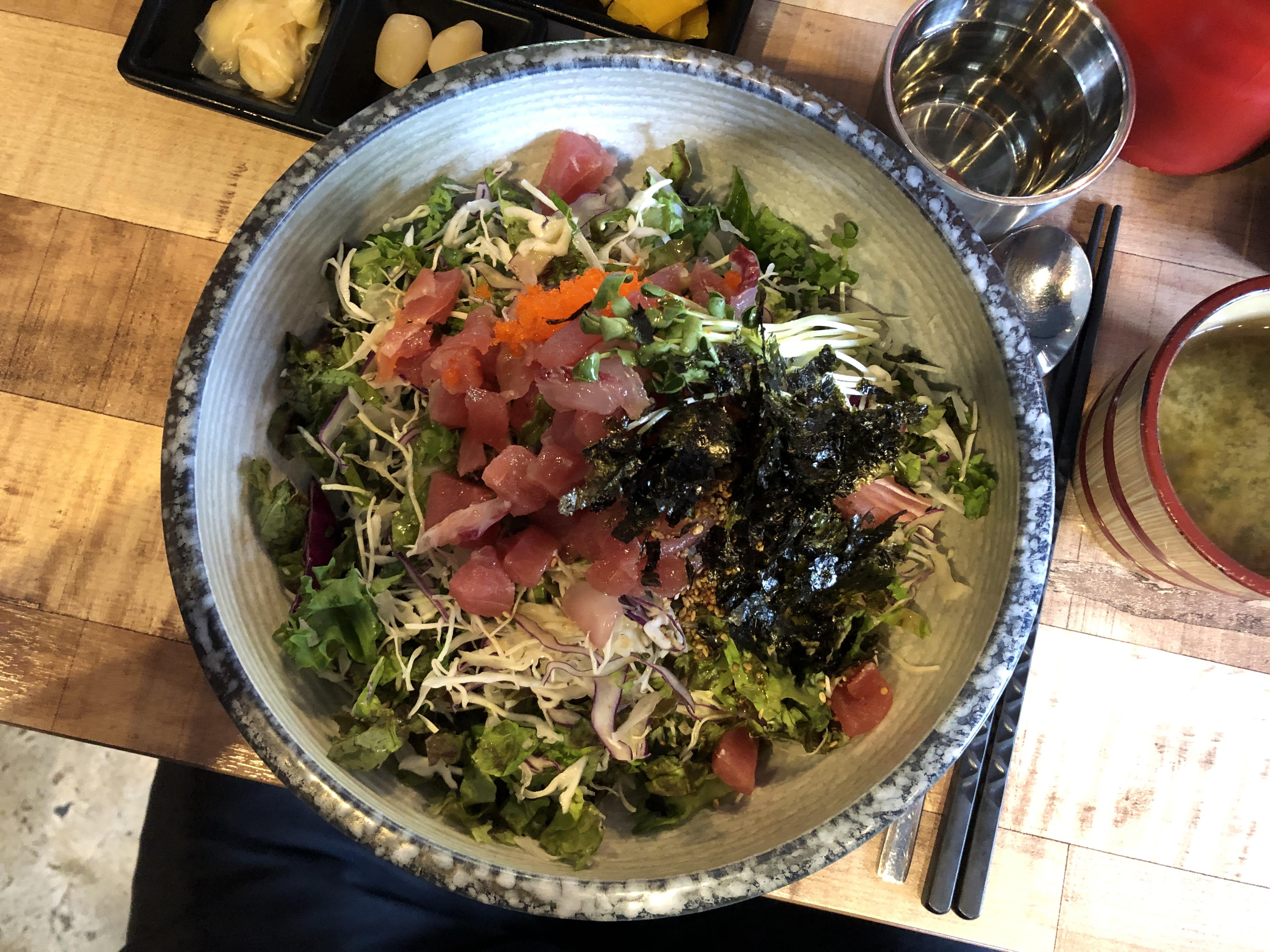 여친은 돈까스야채덮밥을 시키고 저는 회덮밥을 시켰어요.
