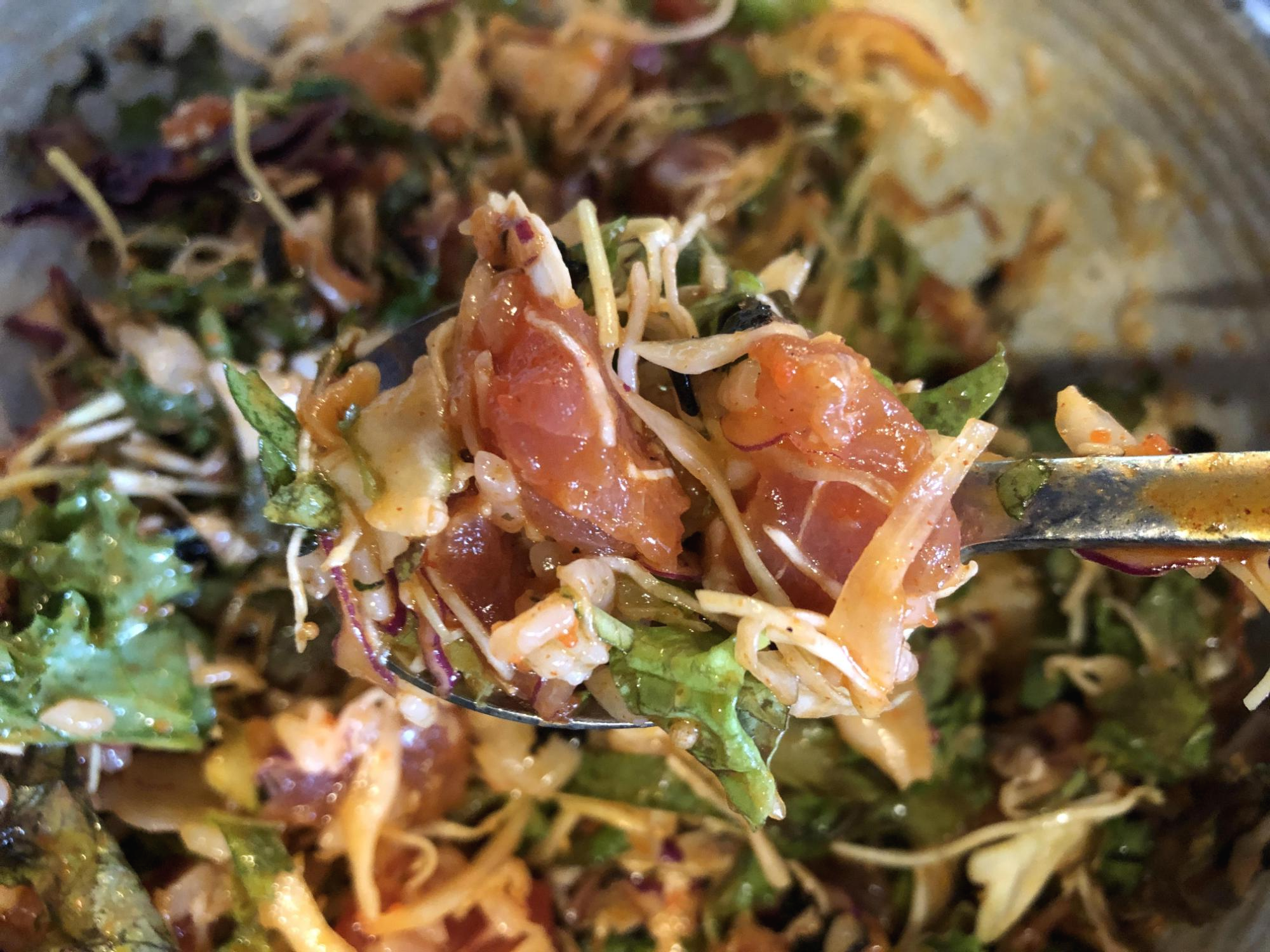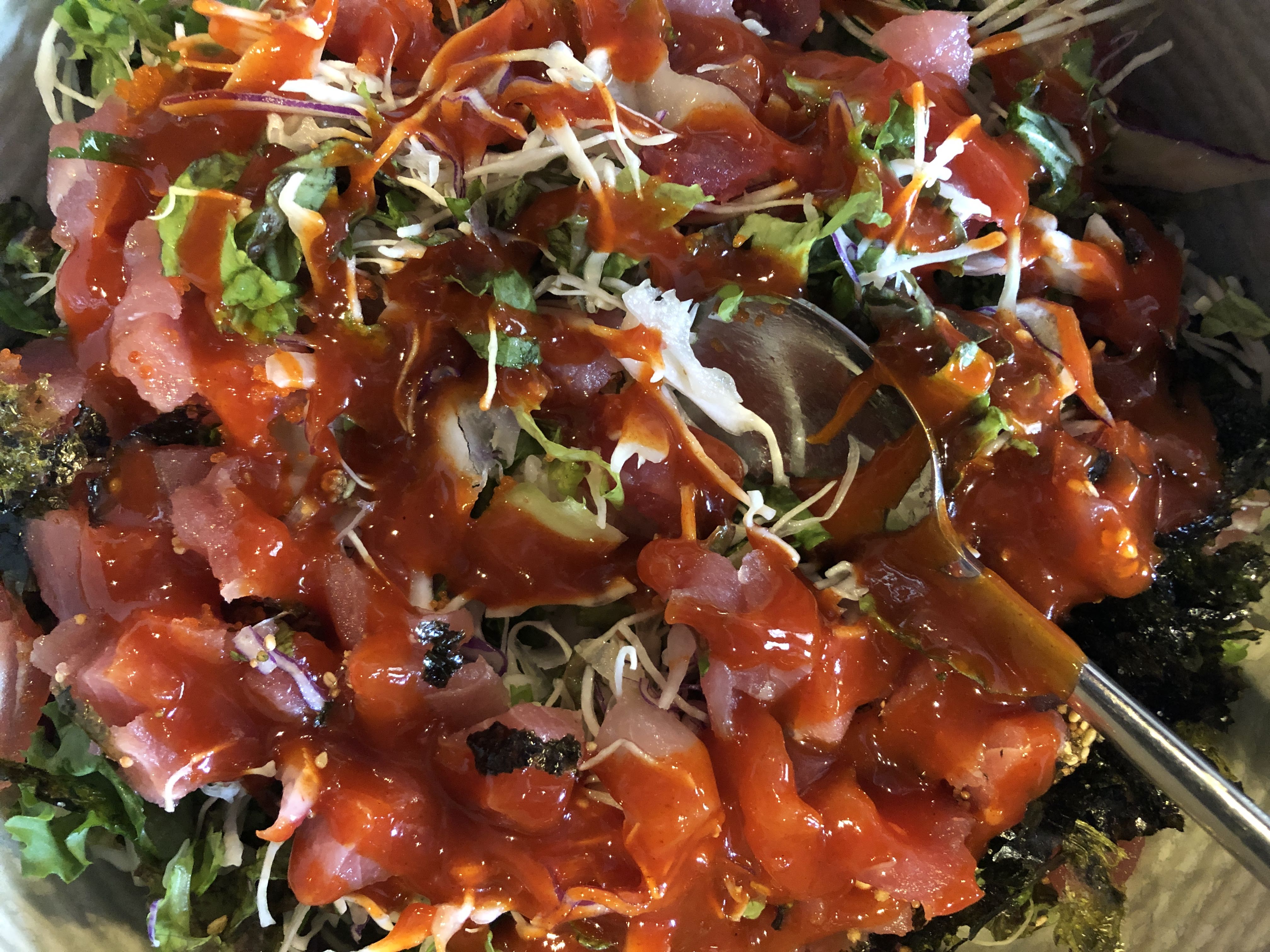 회가 엄청 많이 들어가있죠? 보통 참치라고 속이고 흰살생선(냉동상어고기)으로 속여파는 곳이 많은데 진우네초밥 회덮밥에 나오는 생선은 맛이 좋아요. 물론, 무슨 회인지는 모릅니다.
