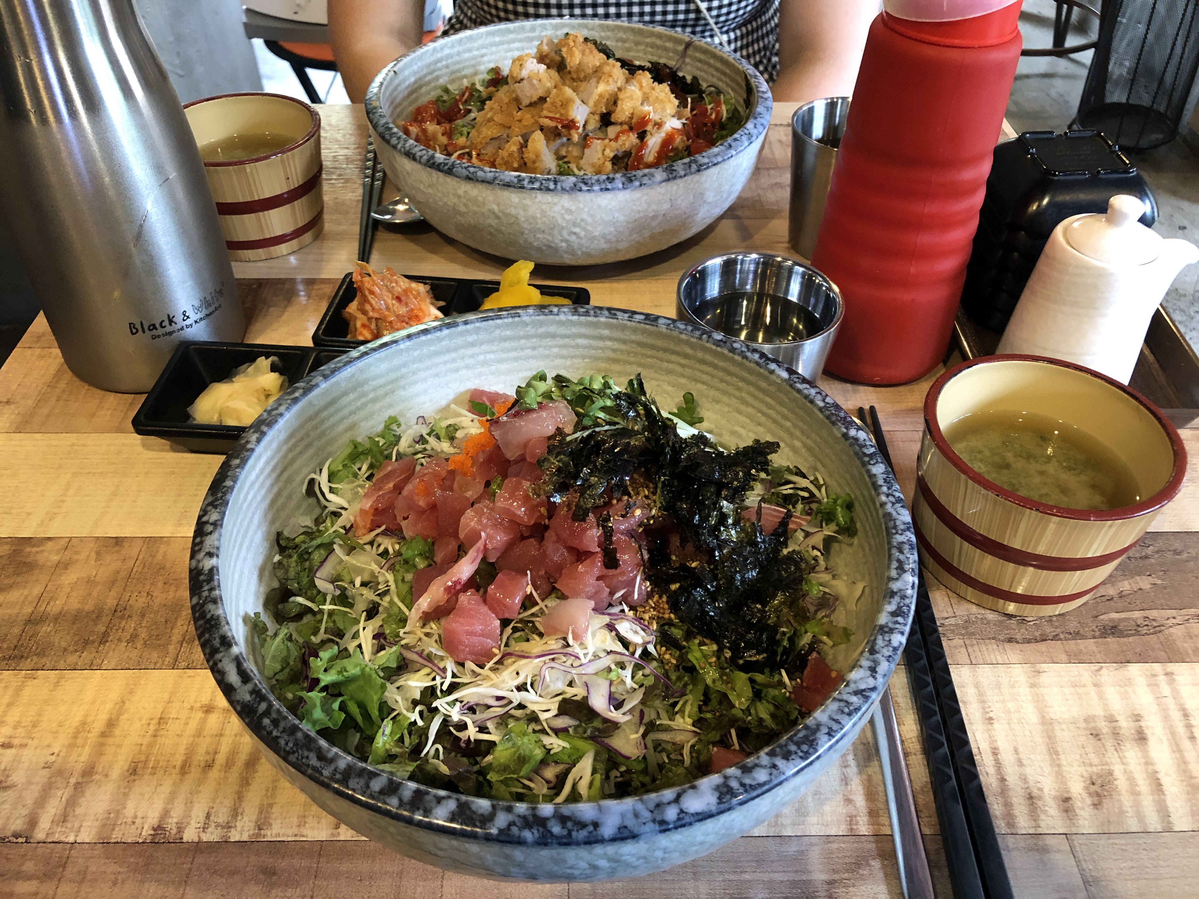 여친은 돈까스야채덮밥을 시키고 저는 회덮밥을 시켰어요.