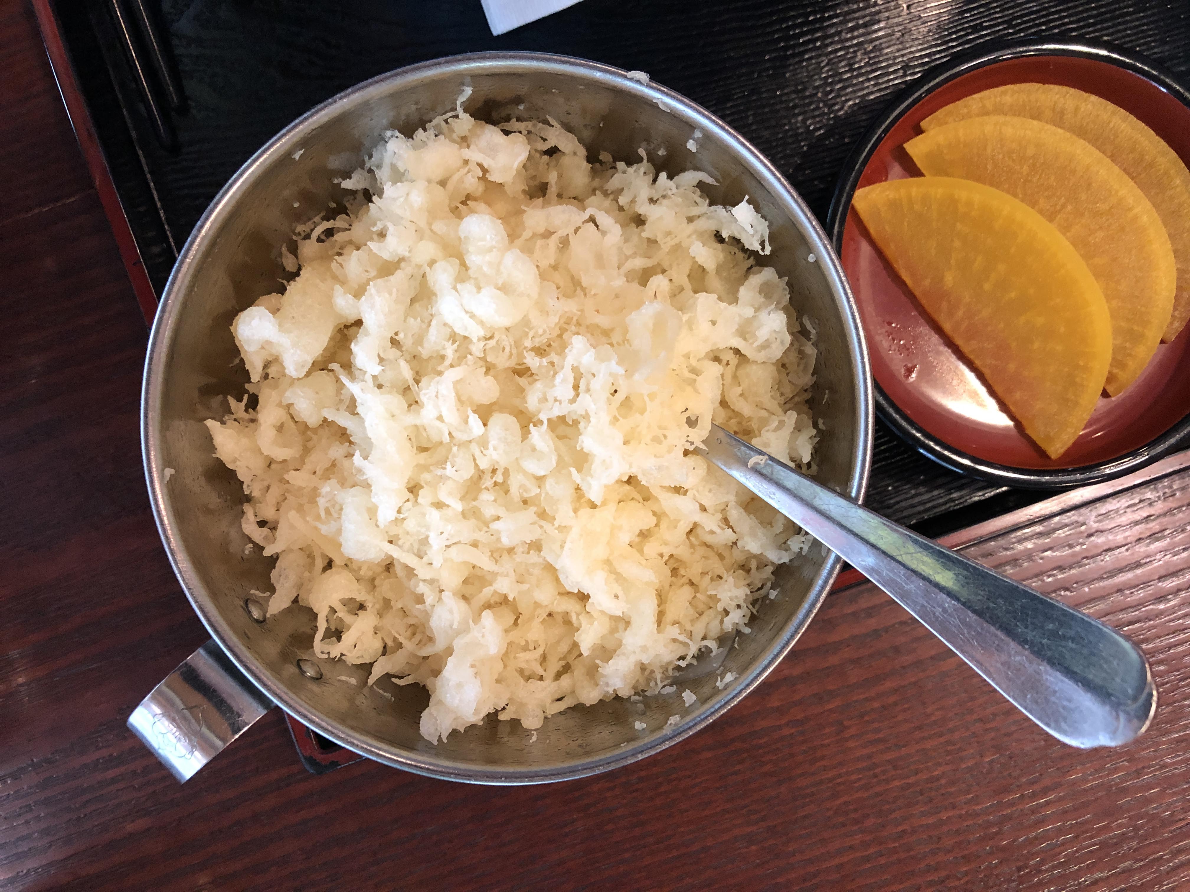 우동이 나왔습니다. 튀김가루도 같이 나와서 먹고싶은만큼 덜어 먹으면 돼요.