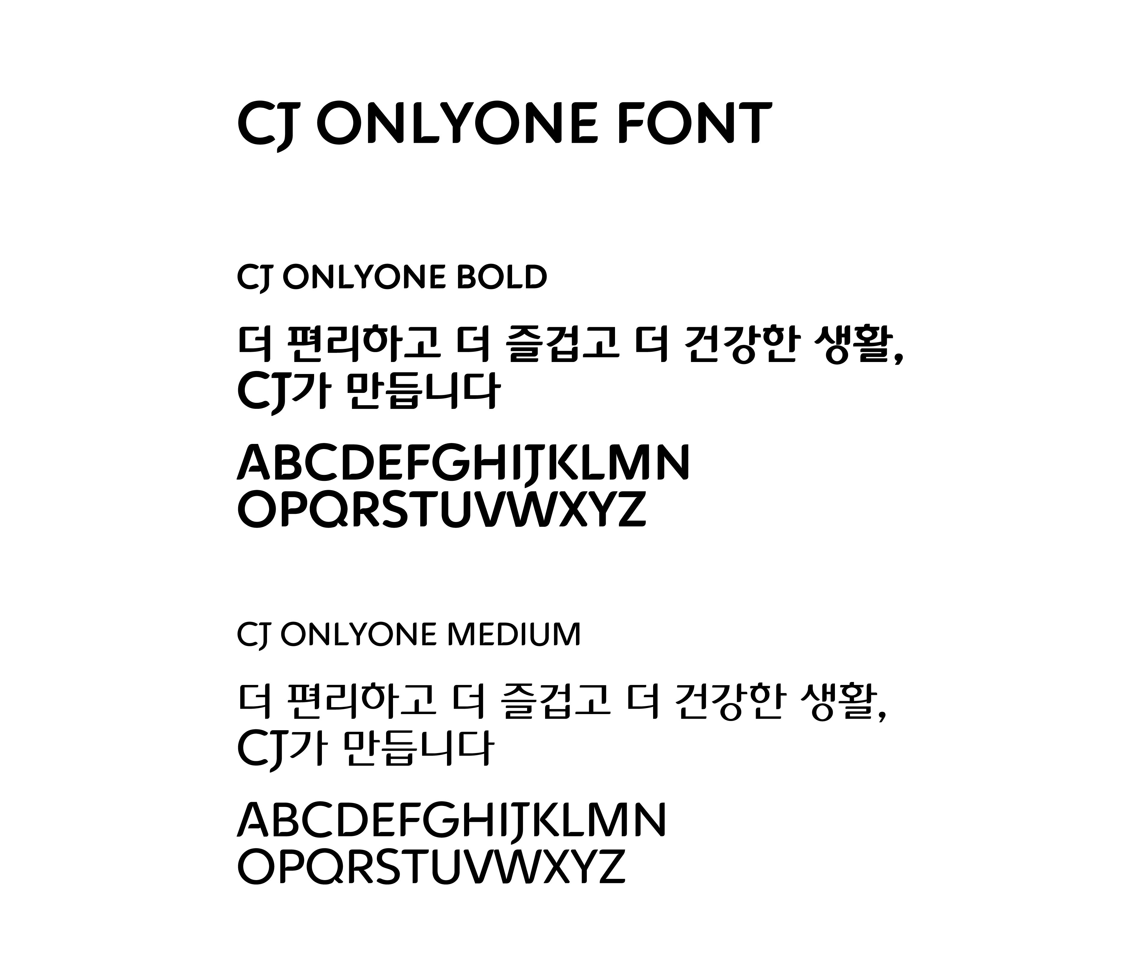 CJ에서 사용하는 폰트 온리원은 너무 올곧지 않으면서도 세련미가 넘쳐서 10점 만점에 9점 이상을 줄 수 있는(?) 폰트입니다. 상업적 용도로는 절대 사용을 못하며 사용했다가 저작권 고소미를 먹을 수 있어요.