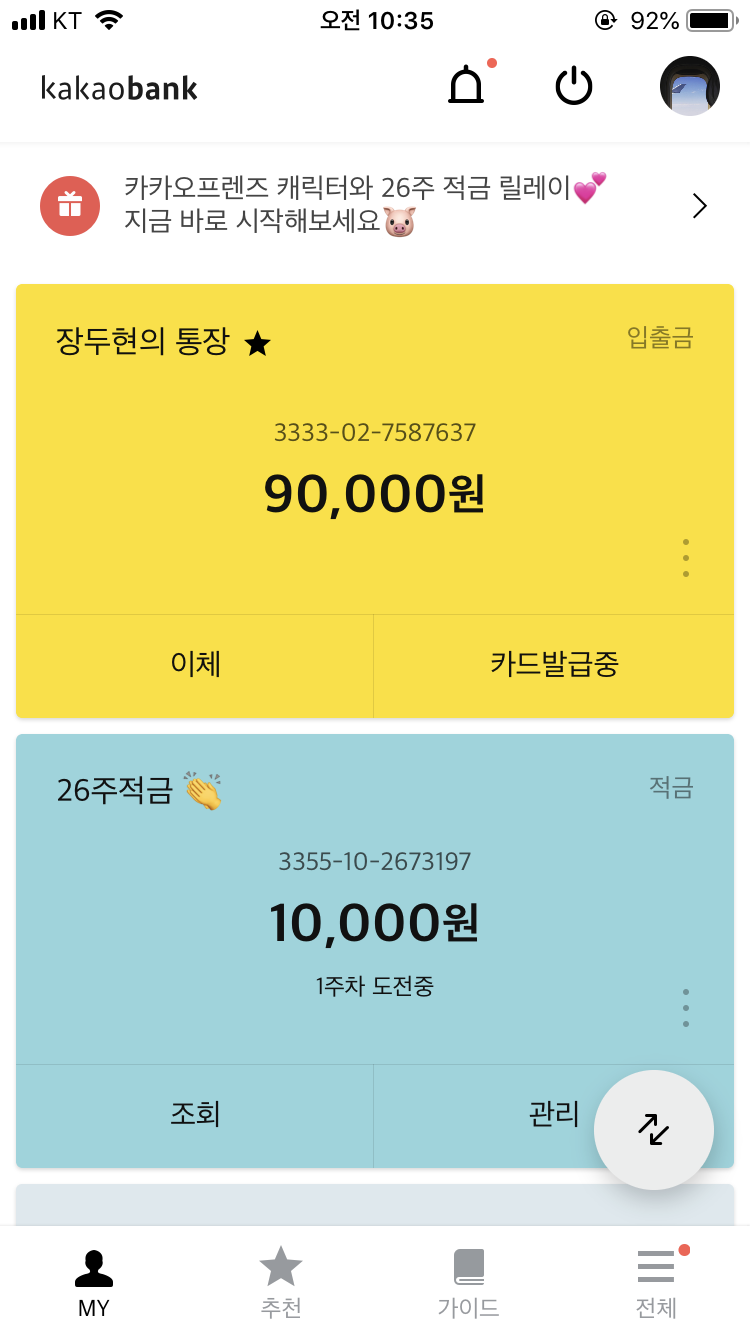 직장인 재테크 카카오뱅크 26주 적금 릴레이를 시작했다