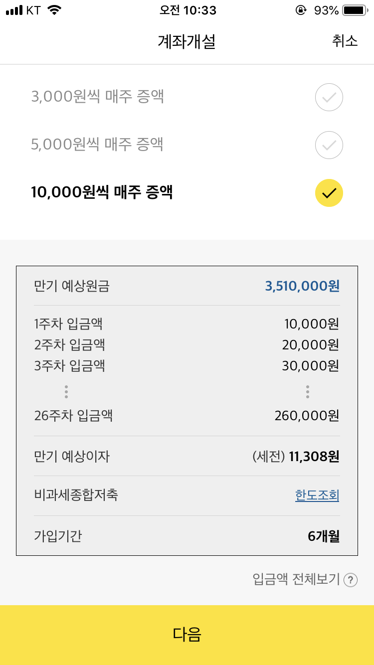 예상원금 351만원! 훌륭하다. 매주 돈모으는 재미가 솔솔하겠군.