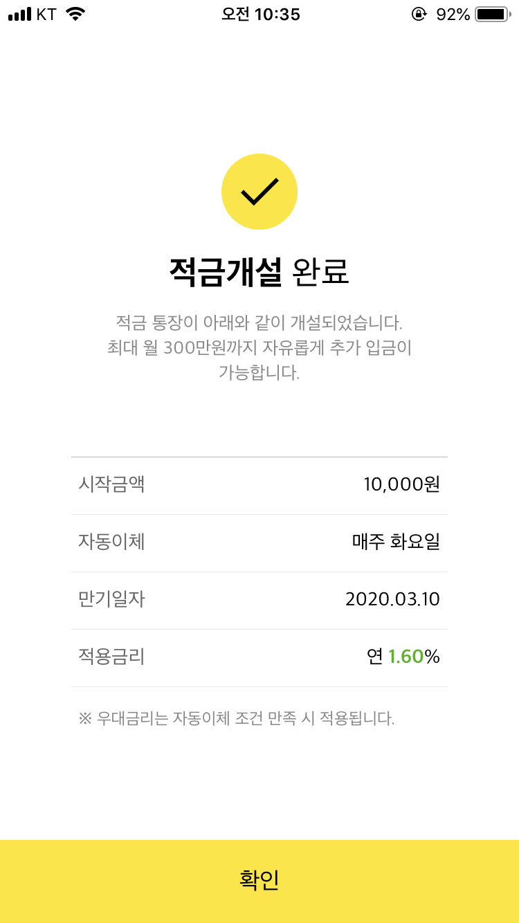 적금 개설을 완료했다. 헤헷! 내년 3월 10일에 만기라고 한다. 왠지 벌써부터 뿌듯한걸?
