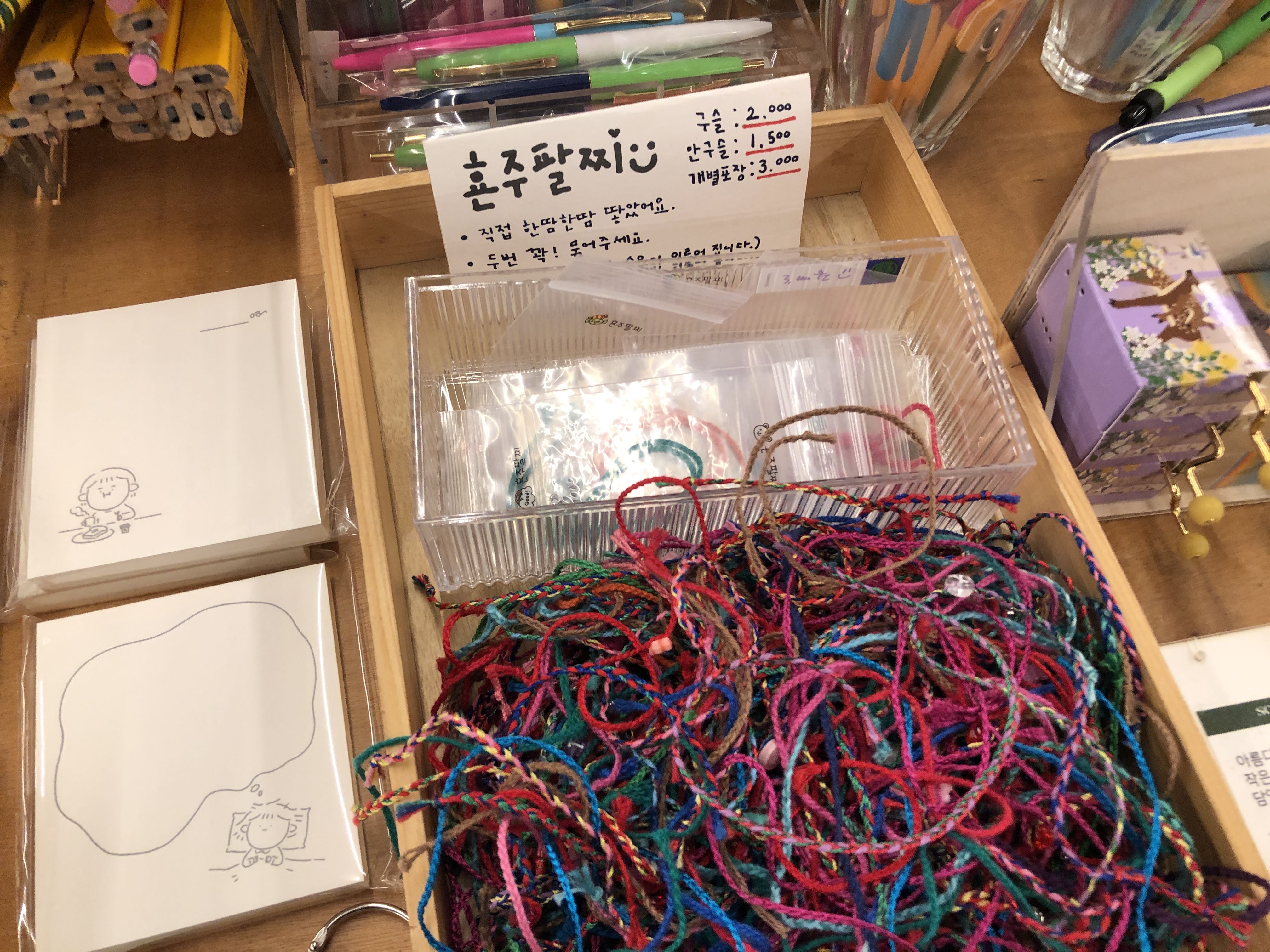 2층에 올라갔더니 소품들이 많이 보이더라고요. 귀여운 물건들 몇장 올려봐요. 횬주팔찌? 아직접 한땀한땀 땋았다고 하는군요.