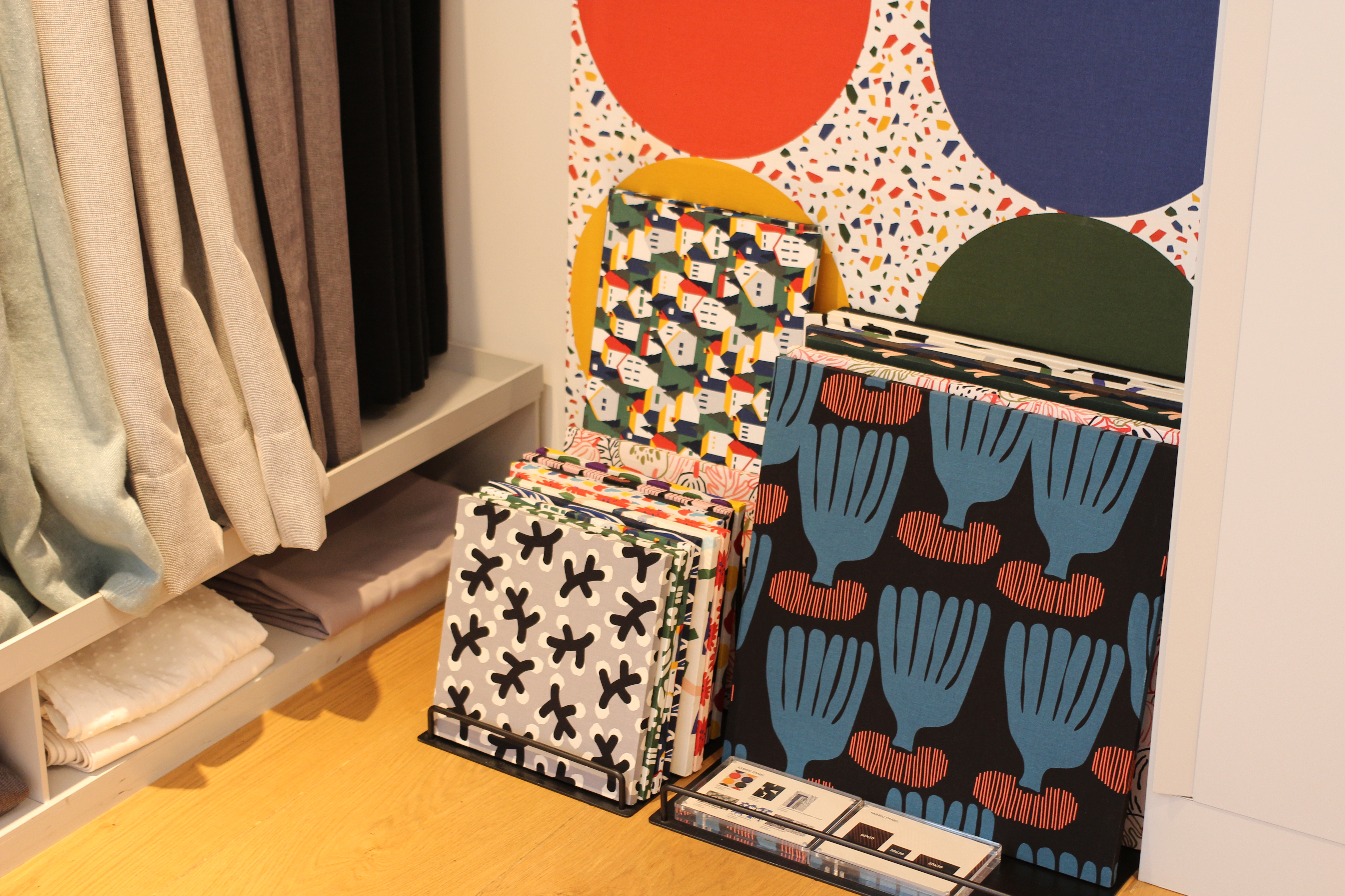 한쪽에는 쿠션과 담요로 보이는 것들이 차곡차곡 놓여져 있었는데요. 알레산드로 멘디니가 생각나는 디자인도 보였어요.