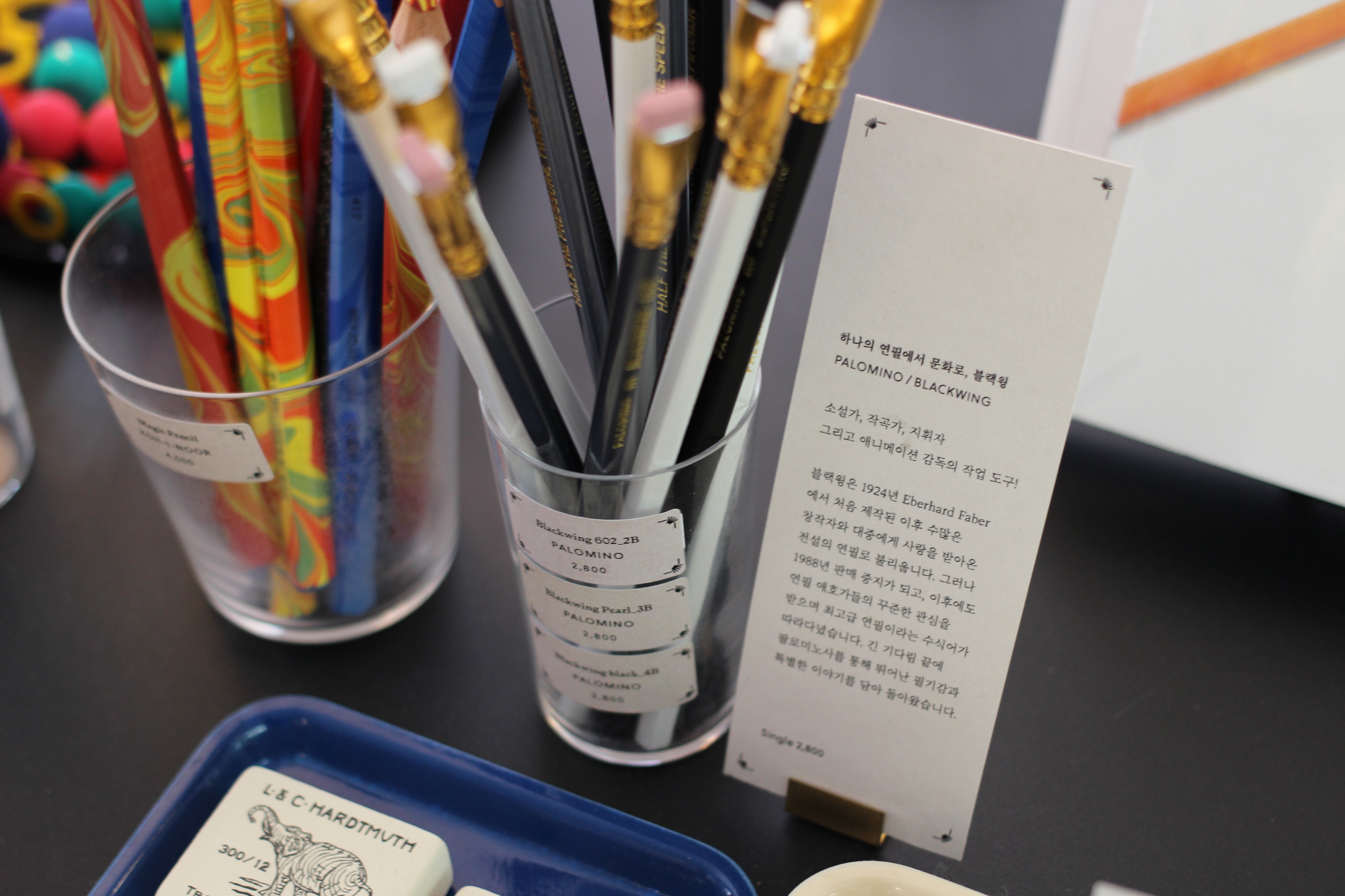 필기구에 대한 설명도 읽어보니 흥미로웠고요. 블랙윙은 소설가, 작곡가, 지휘자, 애니메이션 감독의 작업도구하고 하는군요.