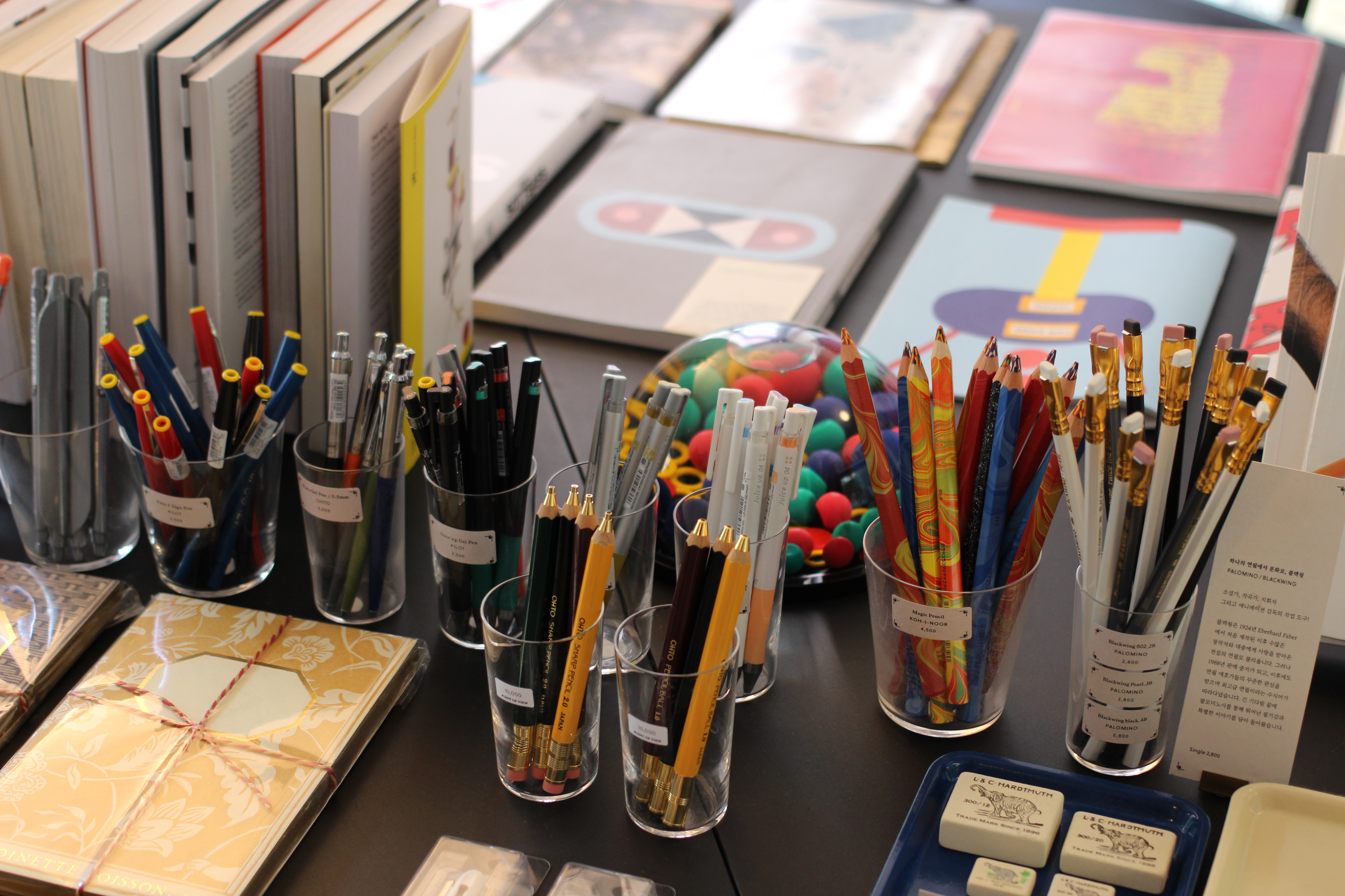 예쁜 필기구가 많더라고요. 한개씩 다 사고 싶었어요.