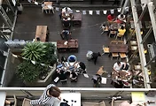 상점과 카페를 자유롭게 드나들 수 있도록 창고 안쪽을 뻥 뚫어놓았다. 뭐라고 해야할까? 완전히 열려있는 느낌을 주었달까.