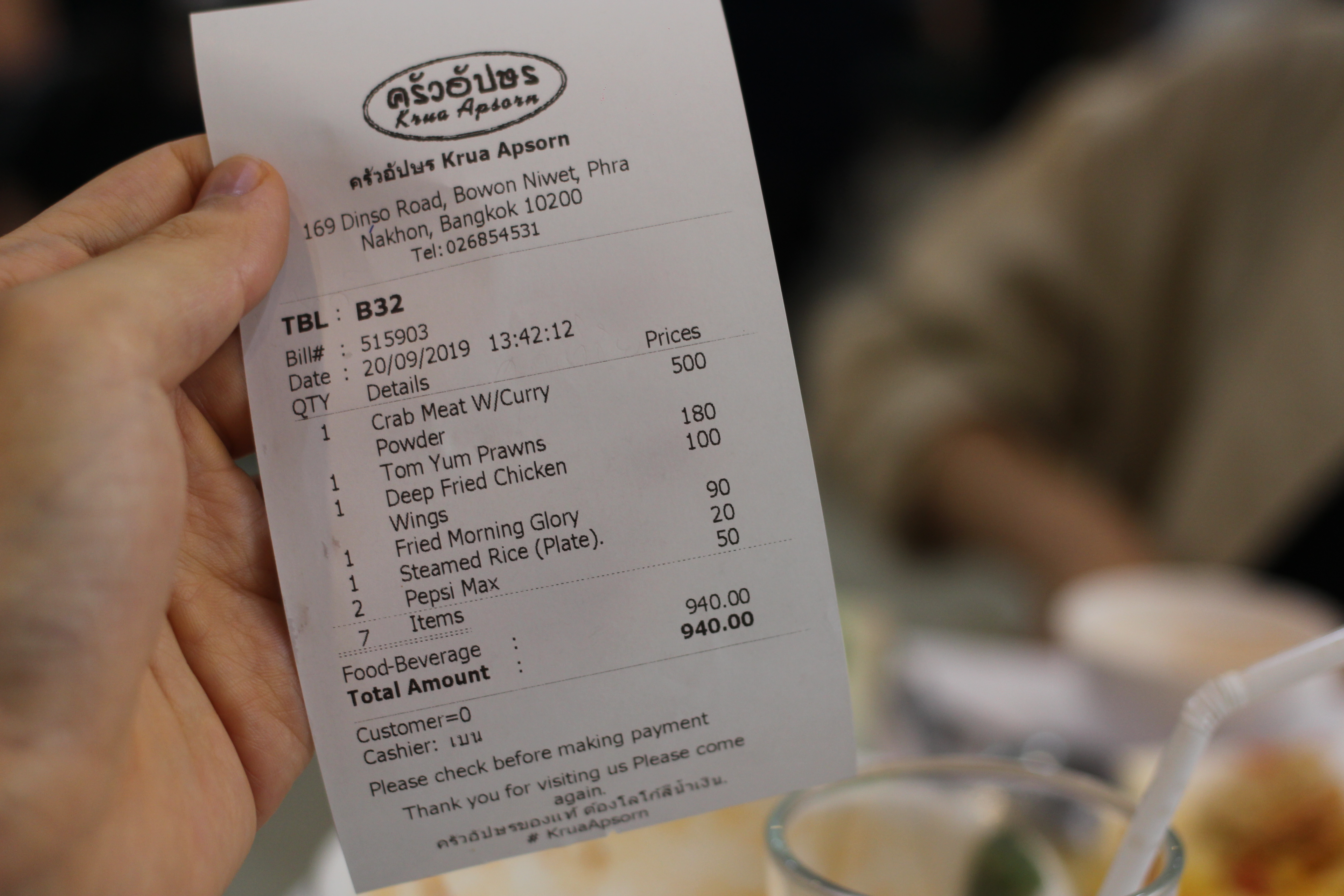 방콕이 처음이라면 BTS(지상철), MRT(지하철), 도보여행을 추천하지만 그렇지 않다면 이동시간을 최대한 줄이는 걸 추천한다. 우리는 이번 4박 5일간의 방콕여행 내내 그랩을 이용했다. 그랩이나 구글지도에는 Krua Apsorn이라고 검색하면 나온다. 이렇게 생긴 간판이 나오면 맞게 찾아온 것이니 안심하자.