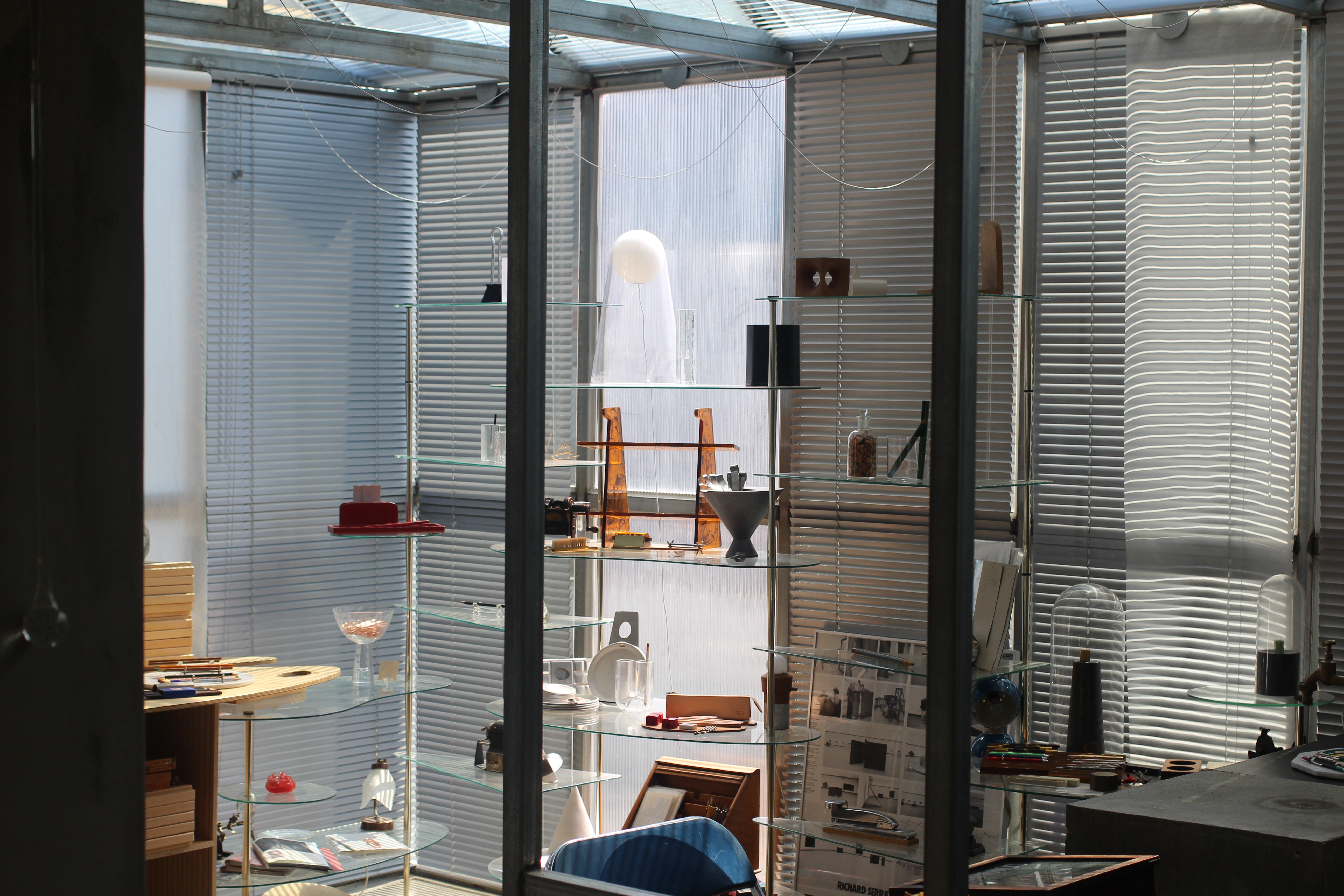 좁은 공간에 필기구와 인테리어 소품들이 옹기종기 모여 있다.