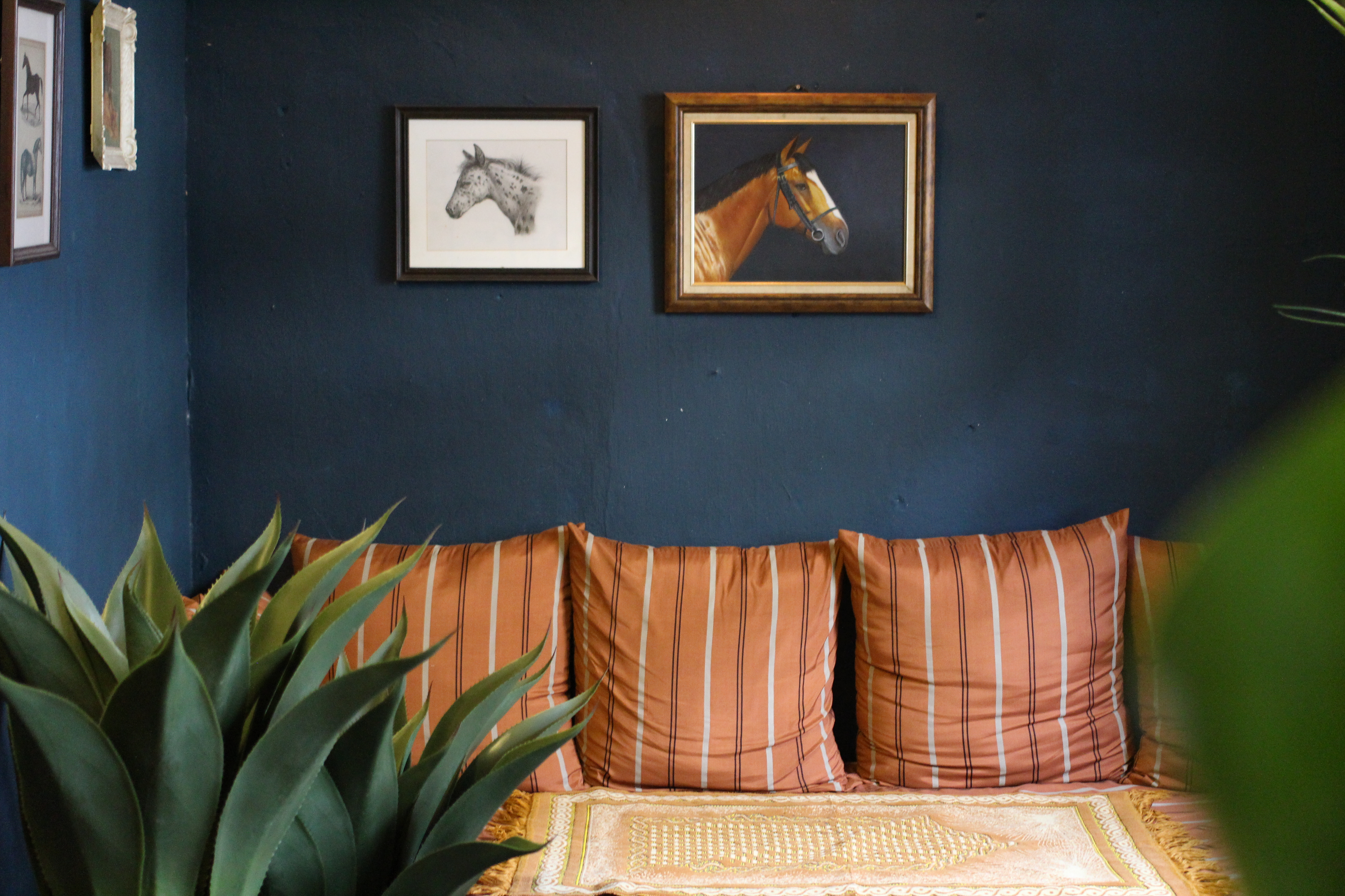 한쪽으로는 소파가 놓여져 있고 말그림이 들어간 액자들이 걸려 있었다. 식물과 동물을 좋아하는 이에게 머스탱네로는 축복이다.