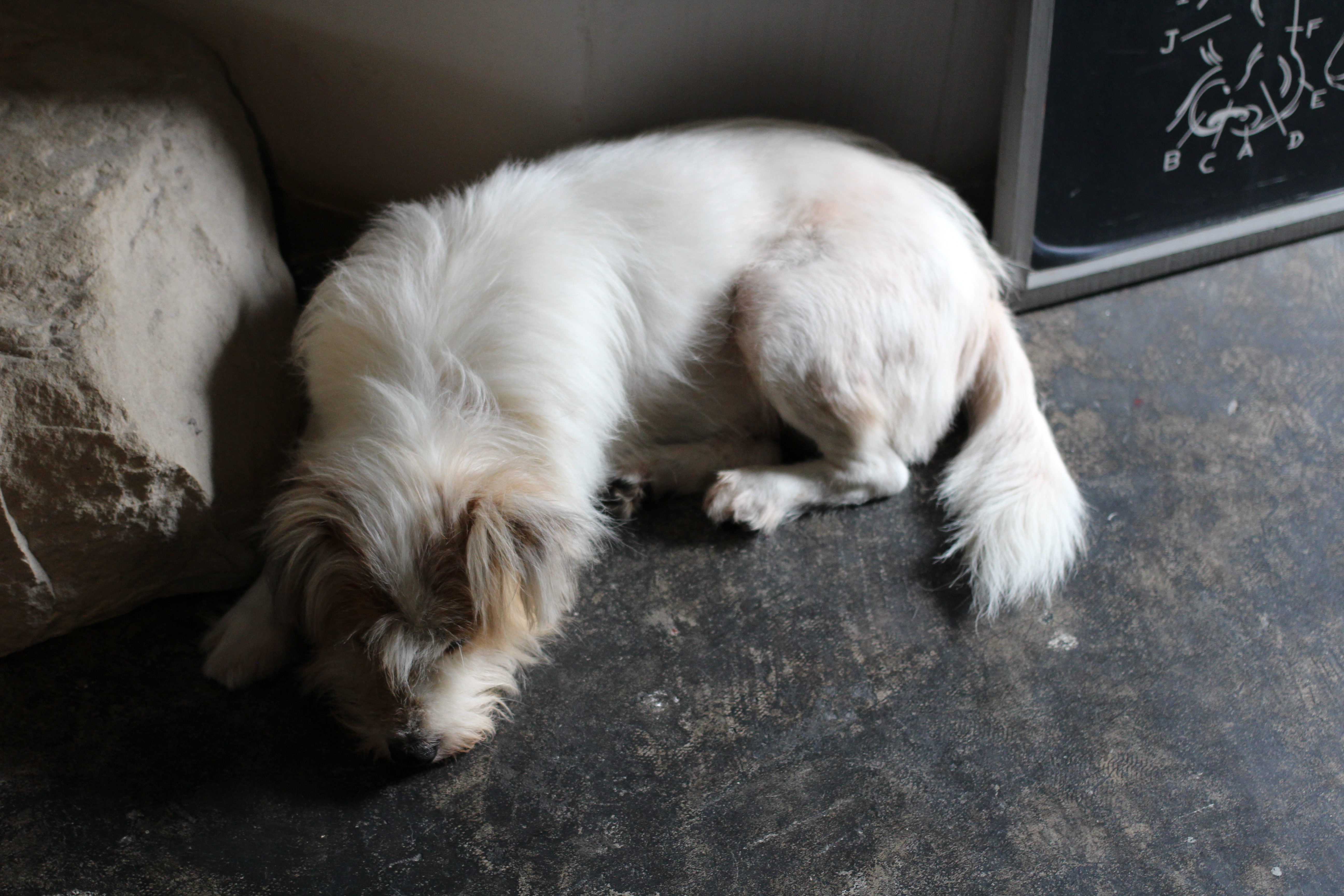 시암고양이님이 테이블 옆에서 주무시고 계셨다. 샴고양이라고도 부르는 종으로 태국산 고양이라고 한다.