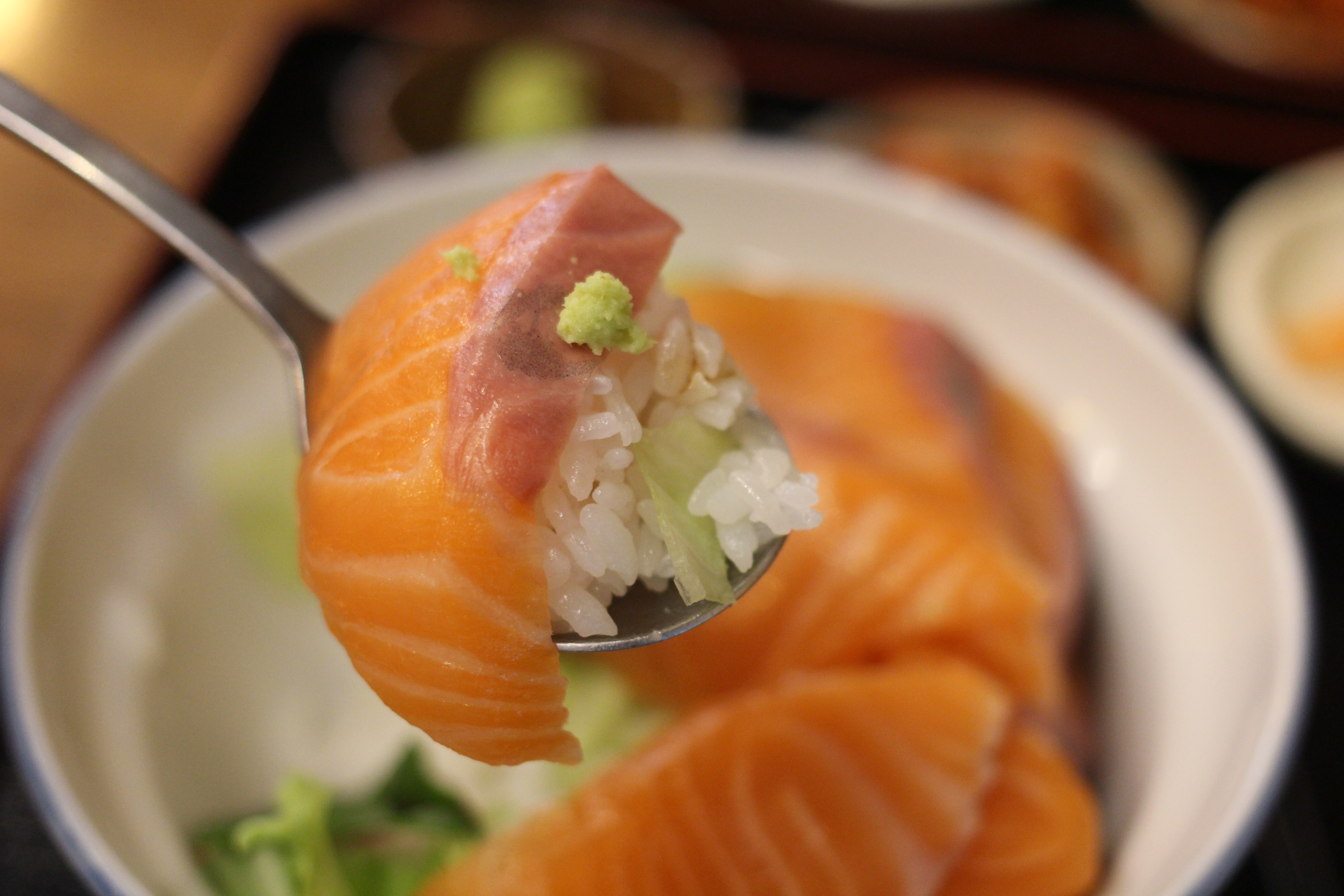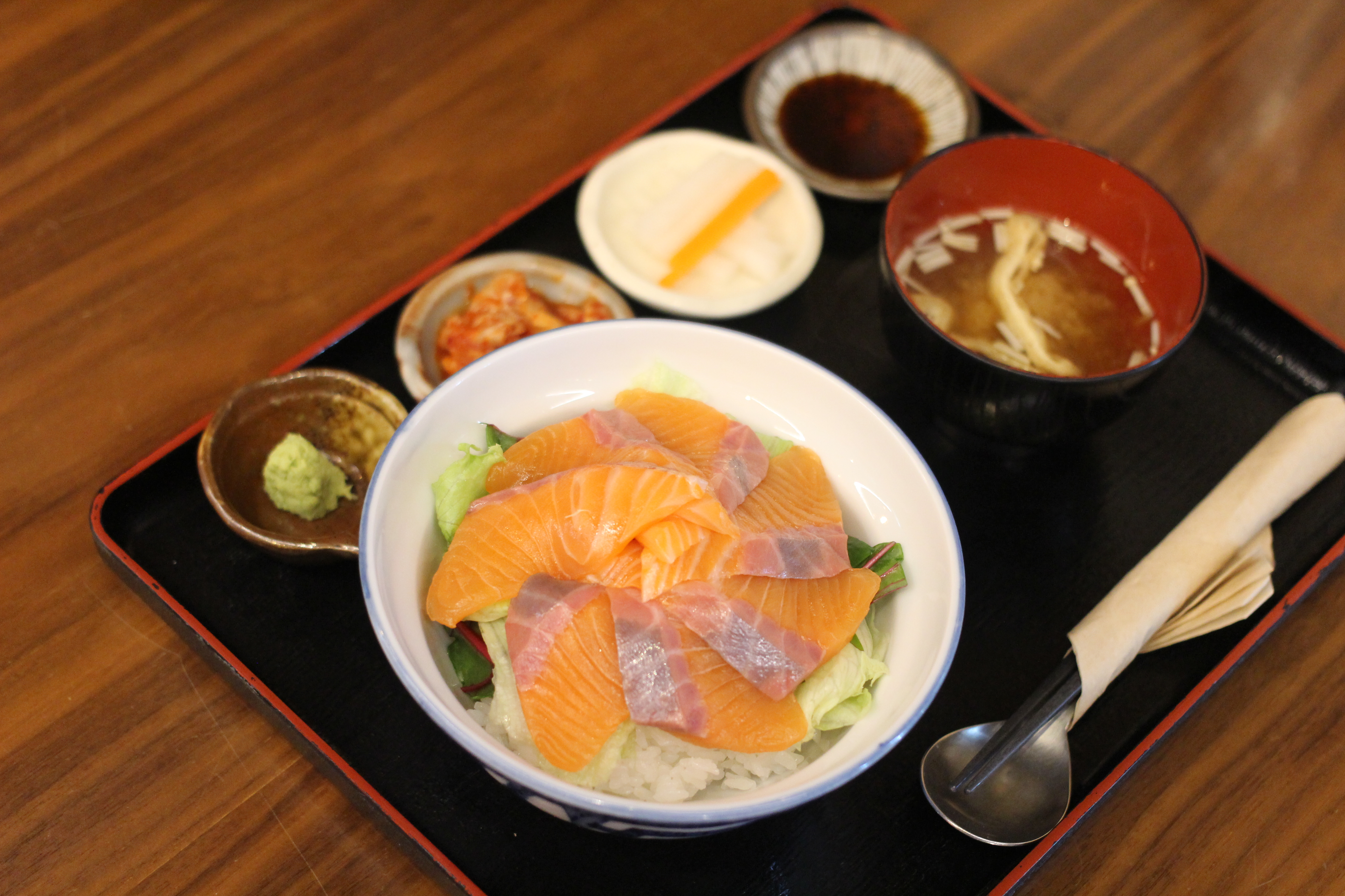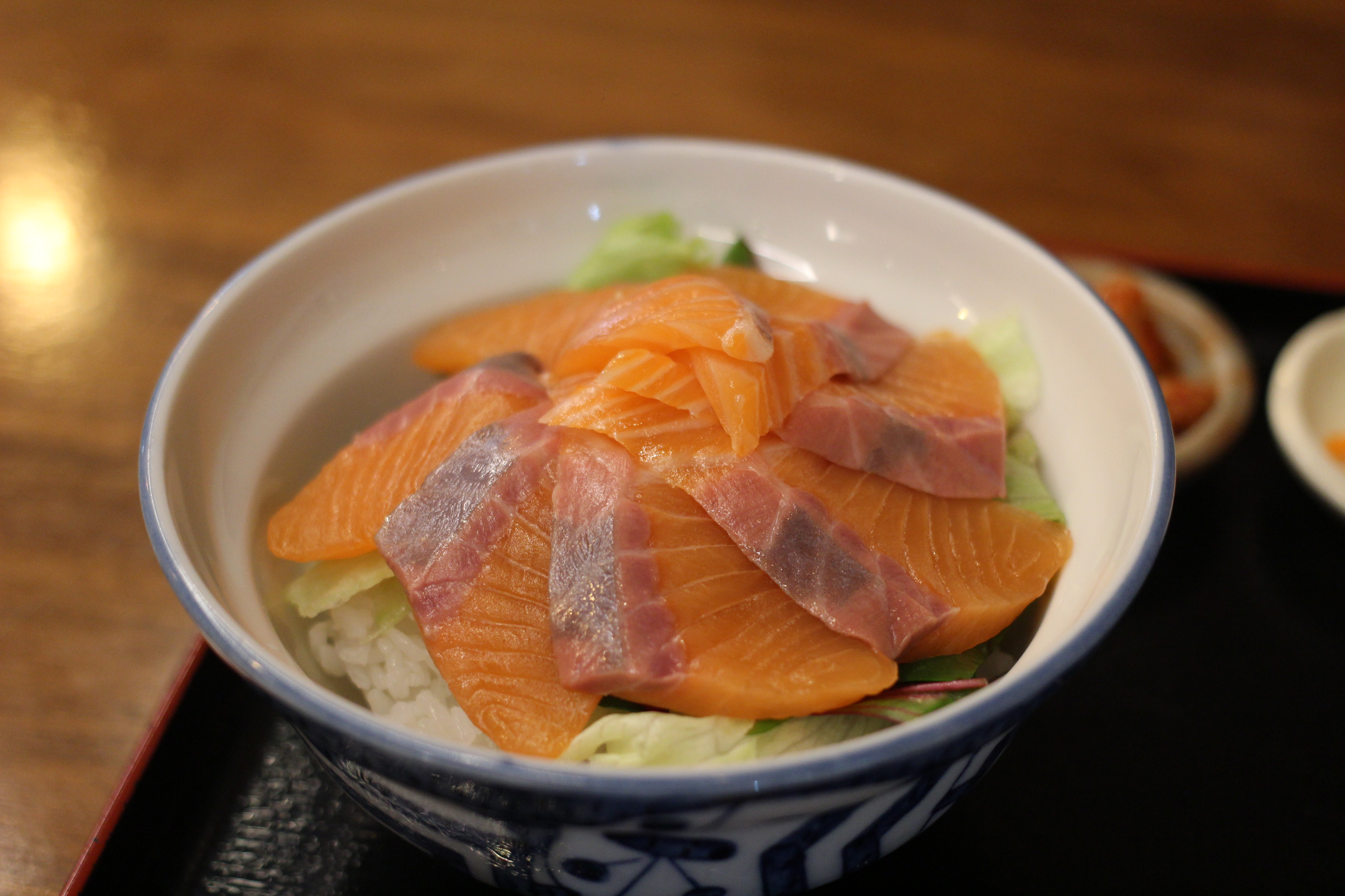 나는 연어동을 여친은 미소나스동을 시켰다.
