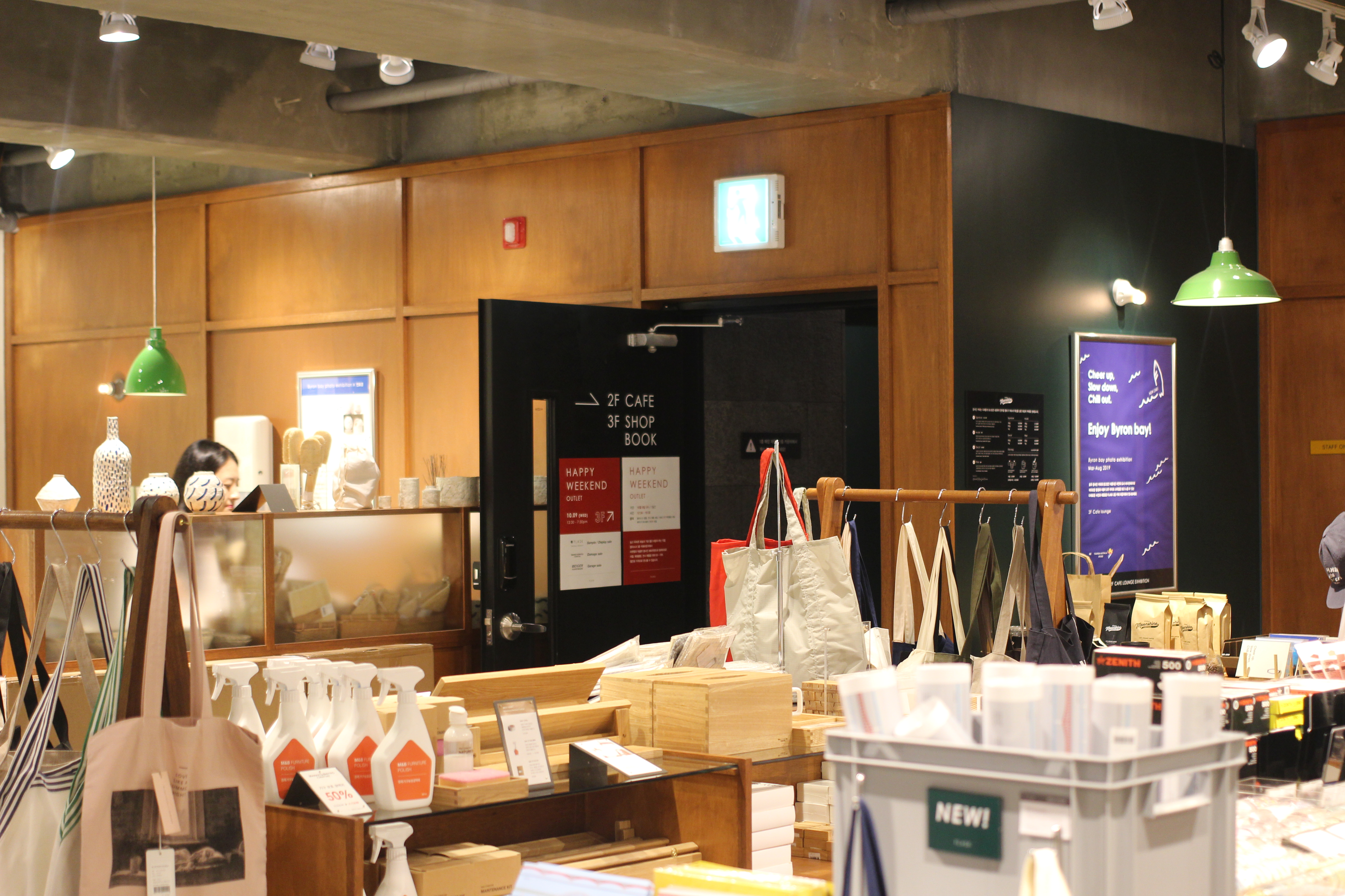 1층은 소품샵 2층은 카페 3층은 서점 및 인테리어 소품으로 구성되어 있다.