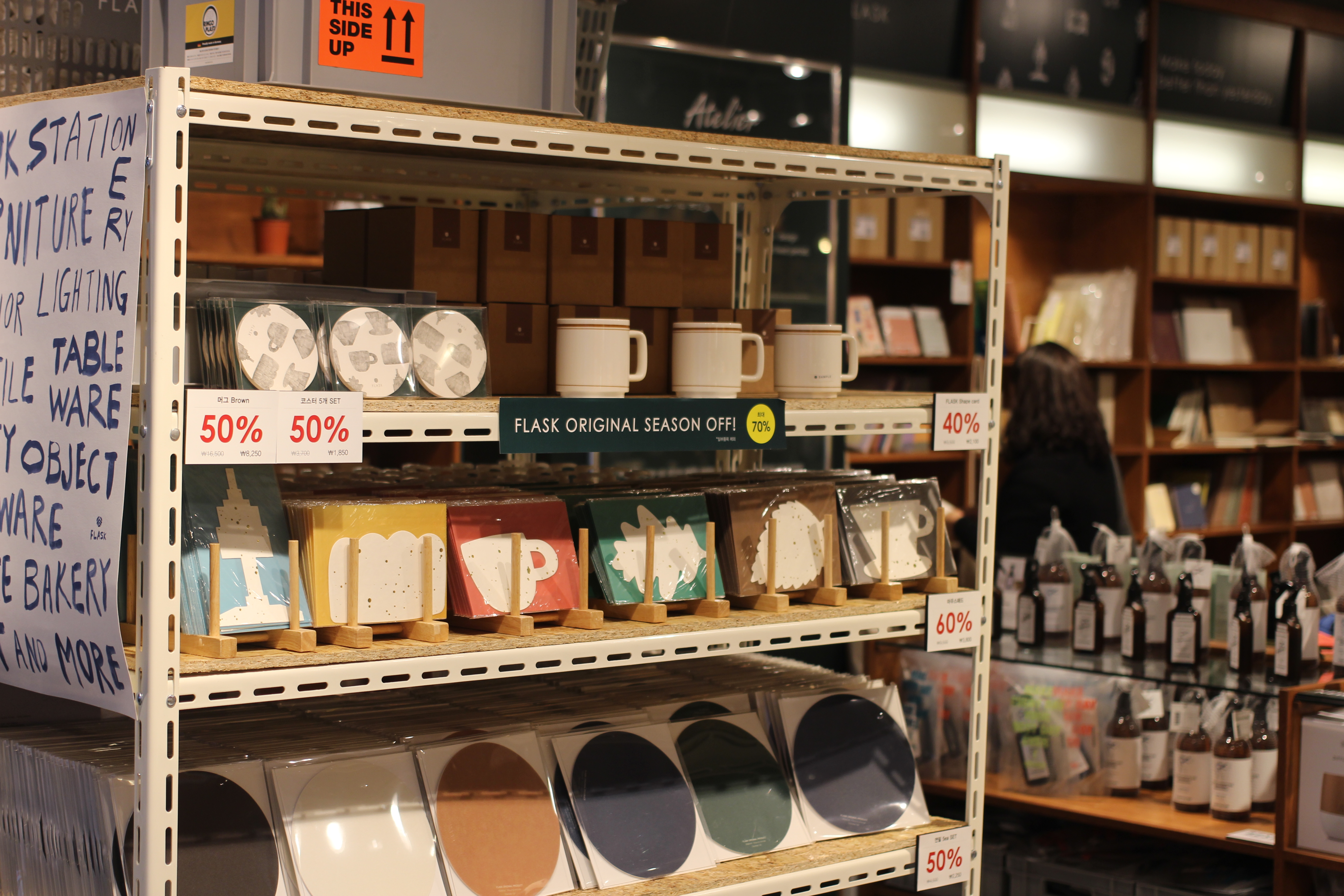 어제는 명동에 나갔다. 달아서 없어질것 같은 구두굽도 교체하고 남산타워 가는 길에 있는 플라스크에도 들르기로 했다. 신세계백화점에 구두를 맡기고 플라스크에 갔다. 플라스크는 가구/소품 브랜드 마켓엠에서 만든 공간으로 다양한 디자인 소품과 문구류, 인테리어 소품을 접할 수 있다.