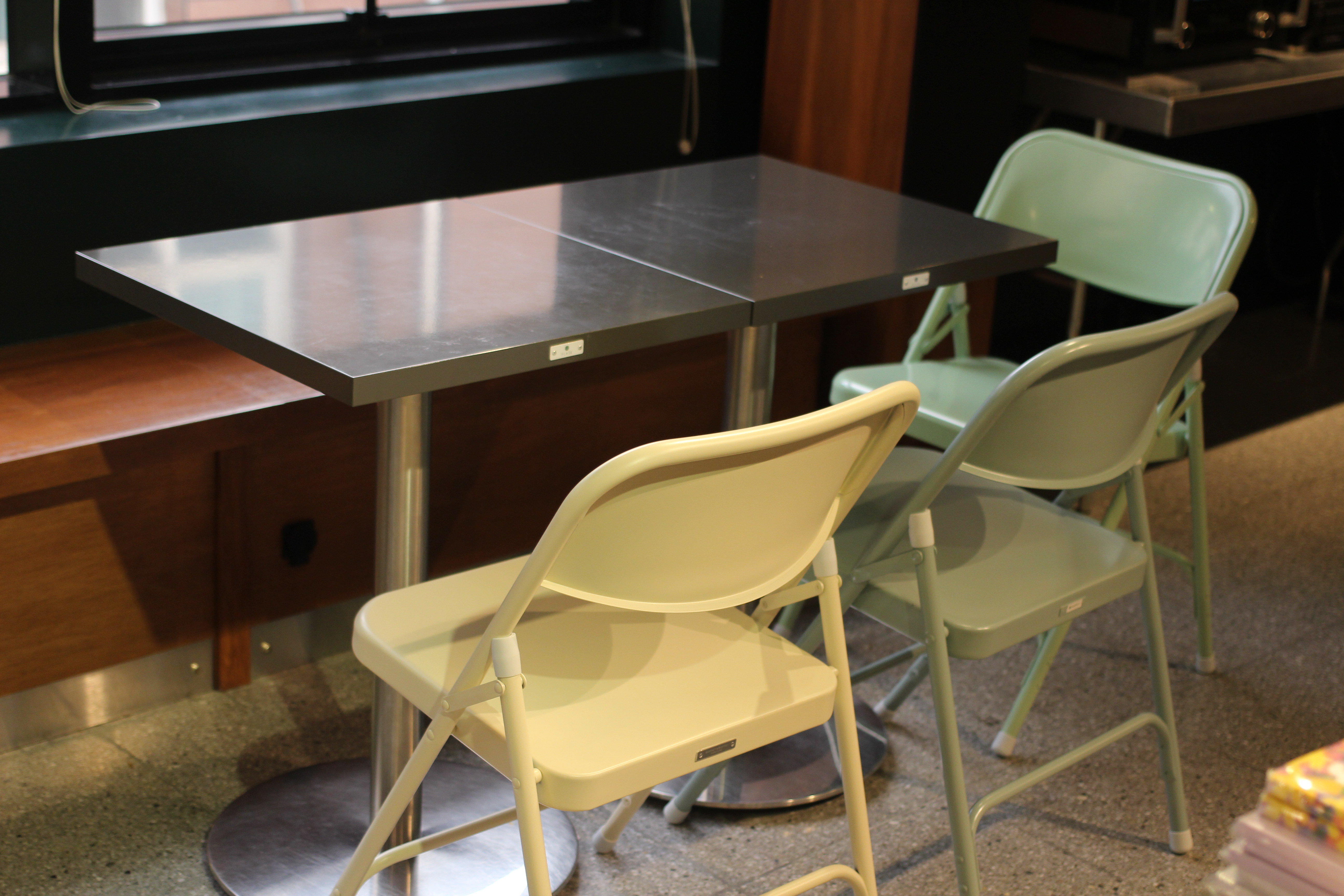 2층 카페에는 호주 커피 브랜드가 들어와 있었다. 오피스 느낌도 나고 깔끔한 느낌이 좋았다. 한쪽에는 스탠드도 팔고 있었고 폴딩체어가 마켓엠에서 미는 상품인지 어딜 가나 폴딩체어 천국이었다.