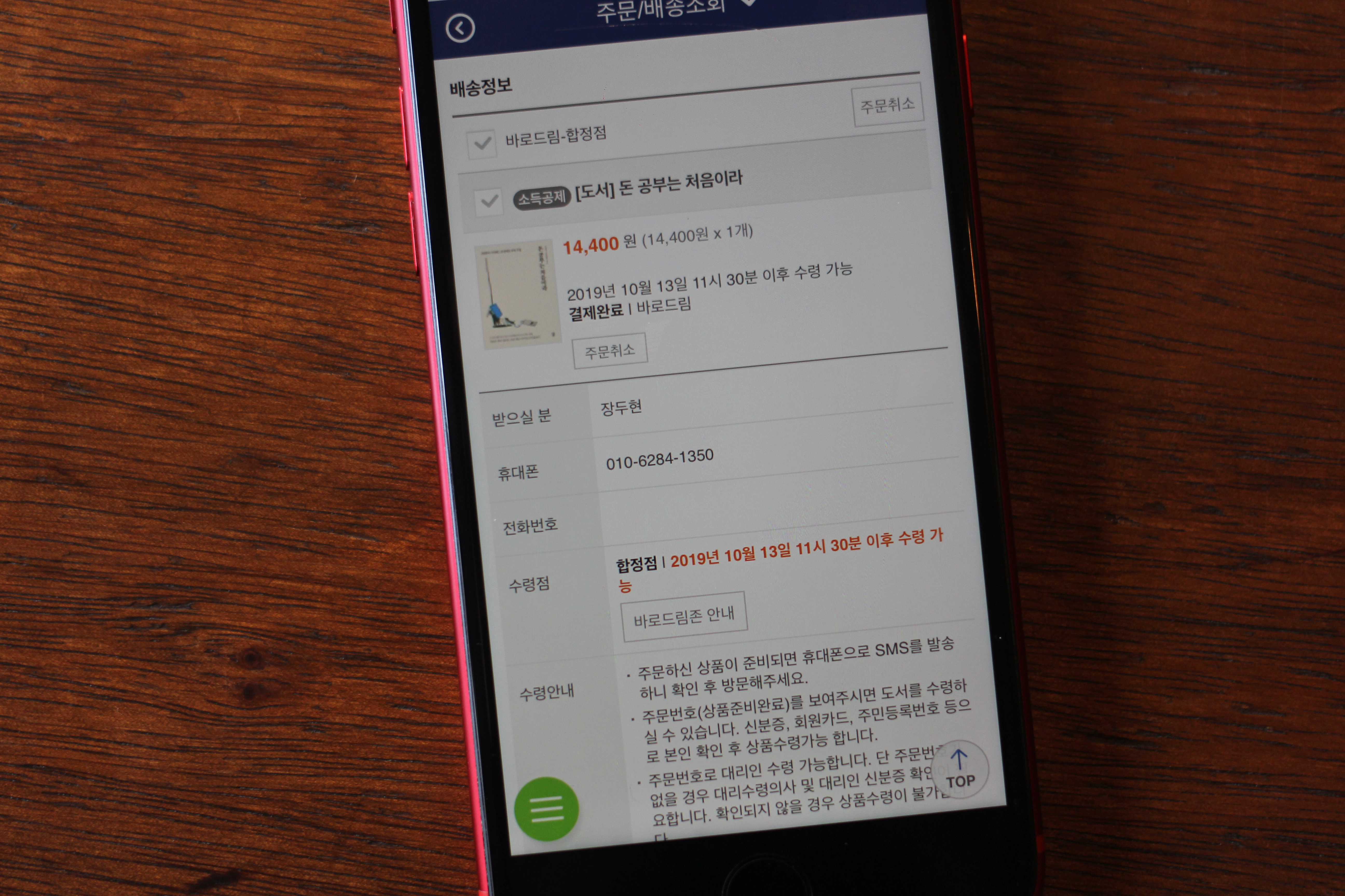 메일로 주문내역이 오고 앱에서 수령안내사항을 읽어볼 수 있으니 참고하자.