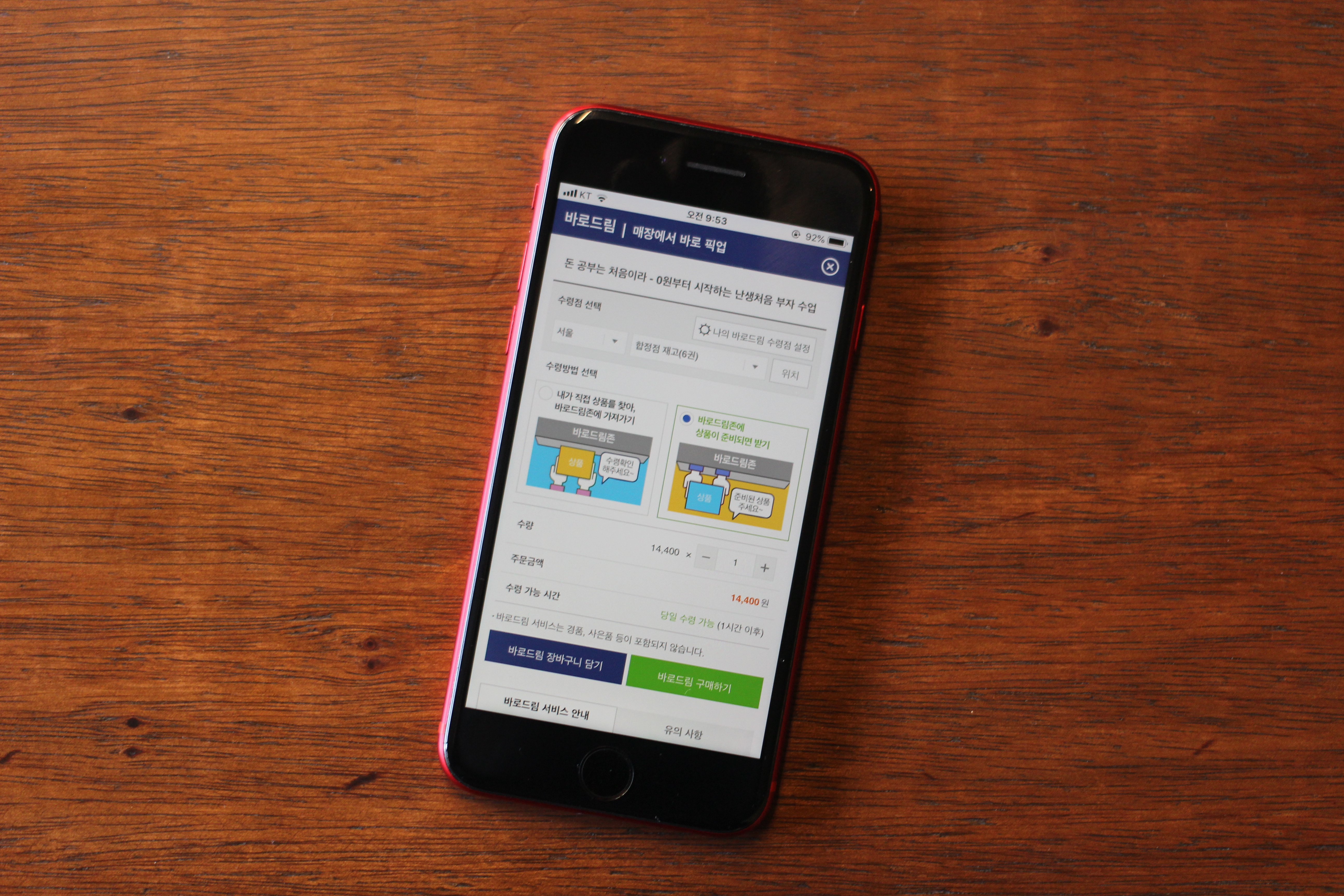 바로드림 구매하기 버튼을 눌러 구매한다. 서점에서 본인이 직접 책을 찾아서 가져다주는 방식으로도 구매 가능하다.