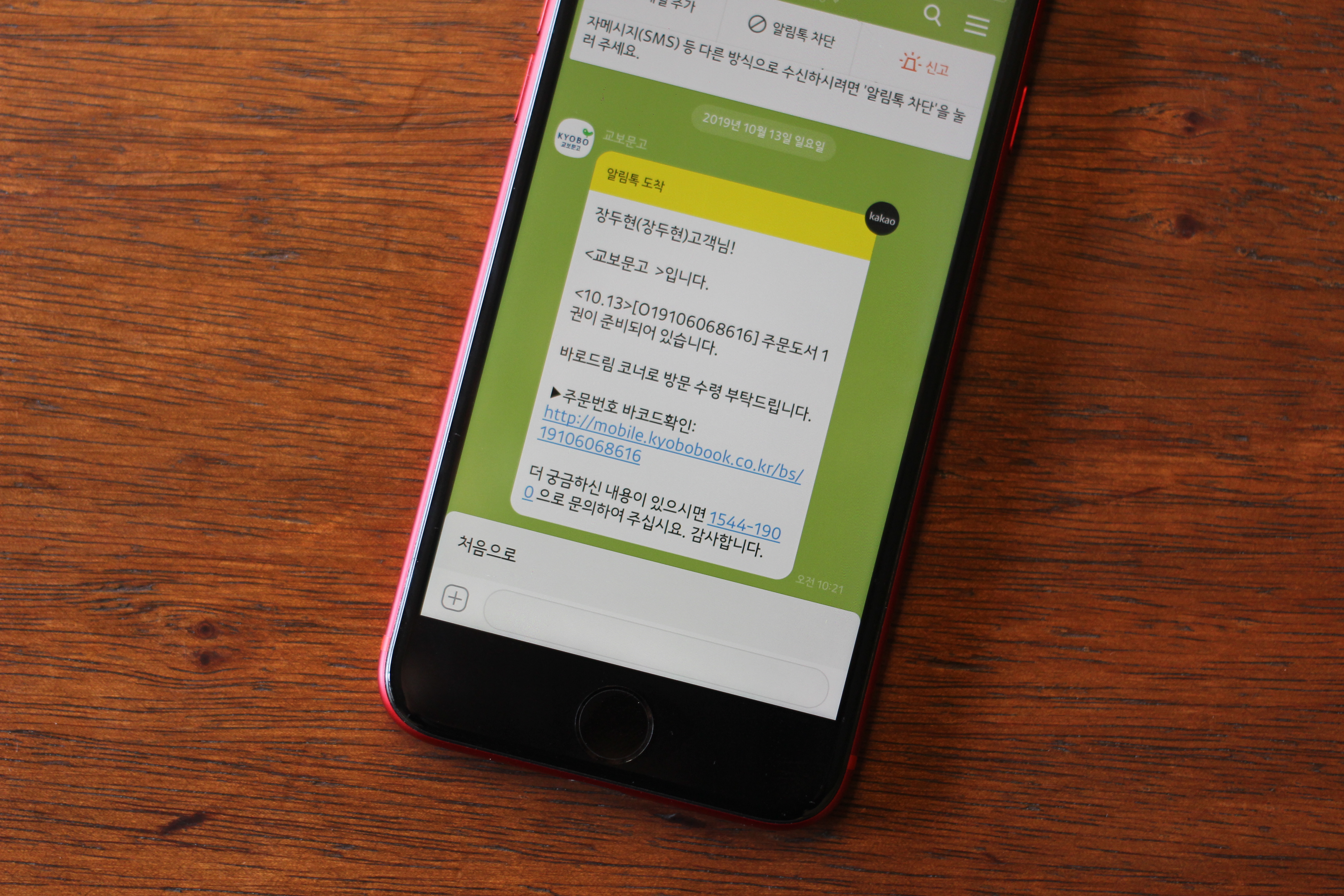 카톡으로 책이 준비되었다고 안내메시지가 왔다.