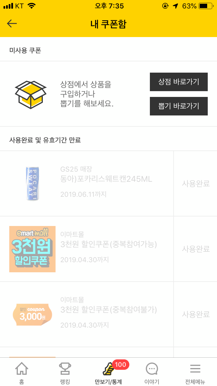 내 쿠폰함을 누르고 상점 바로가기를 누르자. 과거에 GS25 편의점에 들러 포카리스웨트를 마신 적이 있다.