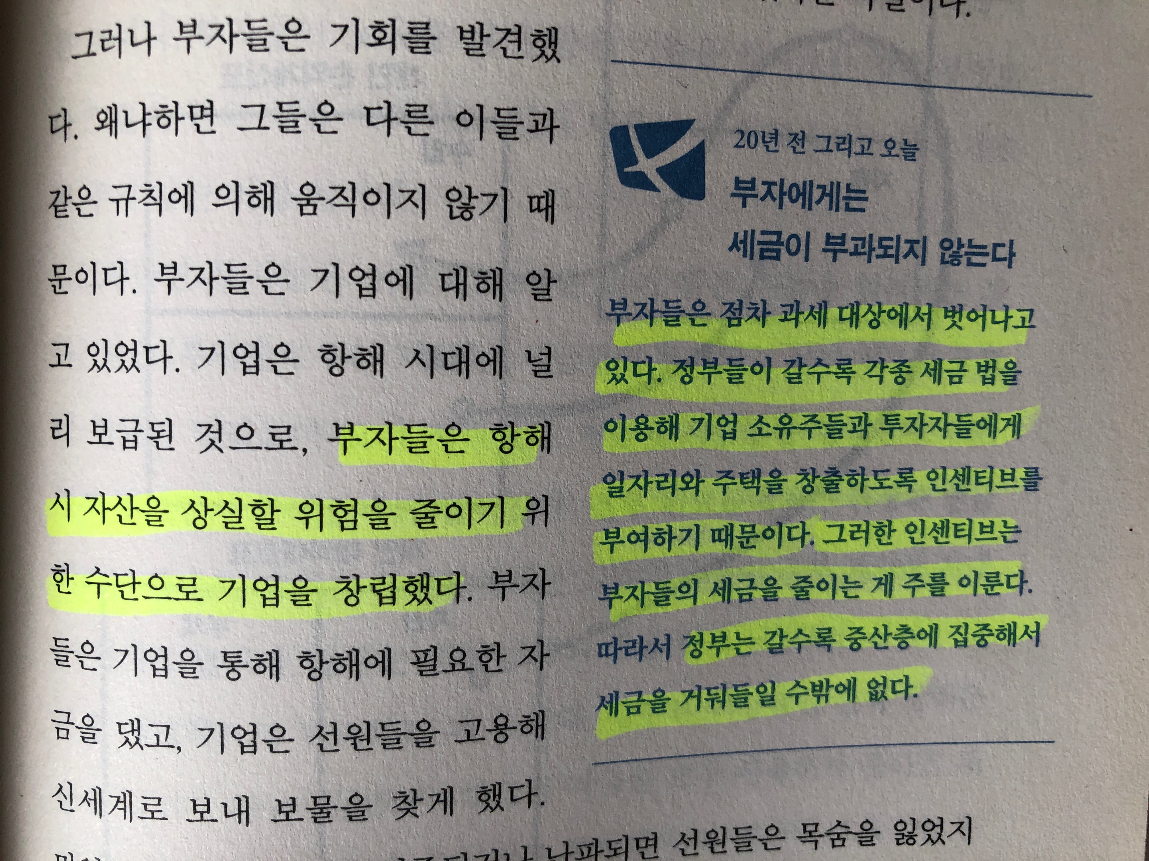 -> 지금 이 시각에도 재테크책은 속물들이나 읽는 거라며 일에만 매달리는 직장인 족히 10만명은 넘을 거다. 부자아빠가난한아빠는 세금 징수의 역사를 적나라하게 공개하며 독자의 뼈를 때린다. 아야~ 아포!