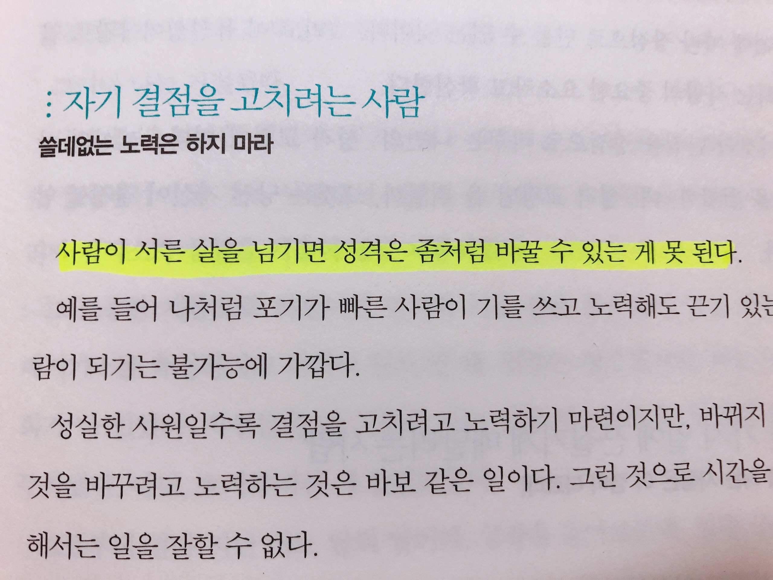 사람이 서른 살을 넘기면 성격은 좀처럼 바꿀 수 있는 게 못 된다.
