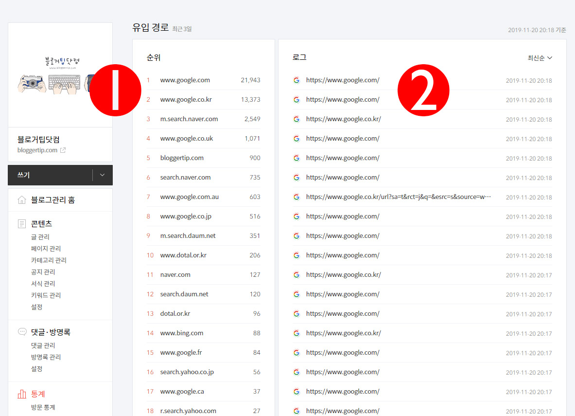 네이버 블로그는 네이버의 폐쇄적인 정책으로 인해 구글에서는 좀체로 검색이 잘 되지 않는다. 티스토리 블로그를 12년간 운영해온 필자의 방문자도 네이버가 압도적으로 많았다. 그러나 올해 들어 구글이 네이버를 압도하는 양상을 보이고 있다. 아래 방문자 그래프를 보자.