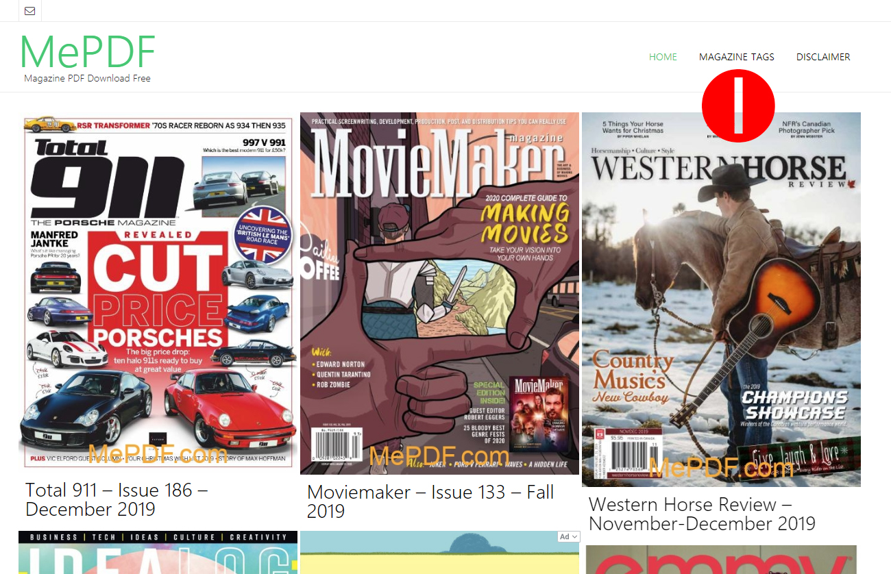 메인화면에서 잡지표지를 눌러 바로 내려받을 수도 있지만 본인이 원하는 잡지를 찾는다면 1번의 매거진 태그를 클릭하자.