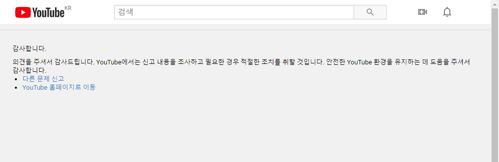 제출버튼을 눌렀을 때 아래화면처럼 감사합니다. 라는 메시지가 나오면 성공이다. 시간이 지나면 무뎌지는 게 사람이자, 여론이다. 장애우가 아닌 나도 정의사회구현을 위해 신고에 동참했다. 약 5분만 시간을 내 YouTube(구글)에 아임뚜렛을 신고한다면 장애우들의 피해를 조금이나마 보상할 수 있을 것이다.