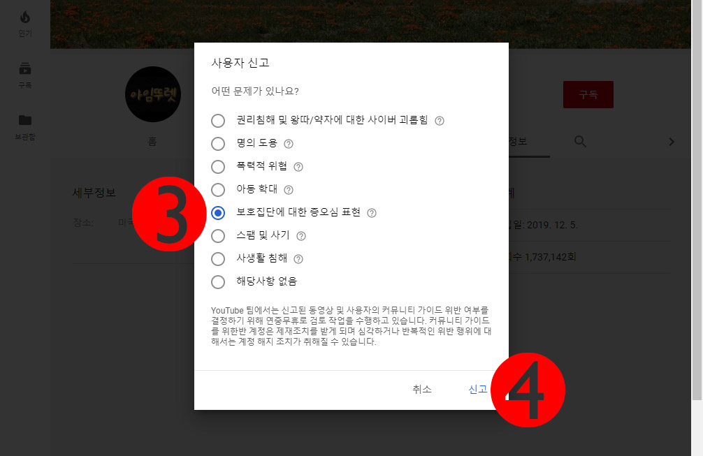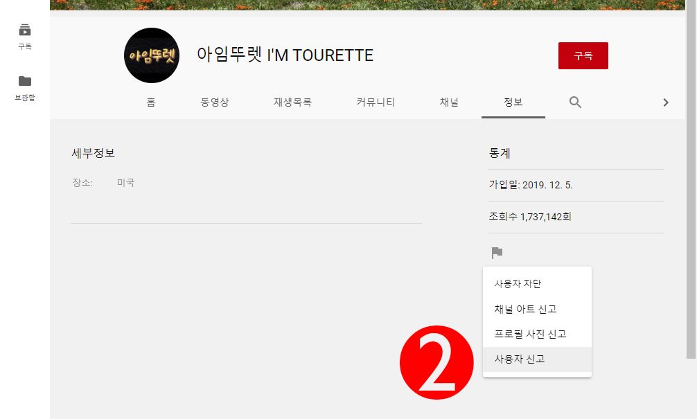 아임뚜렛 유튜브 채널 구글에 신고하는 방법