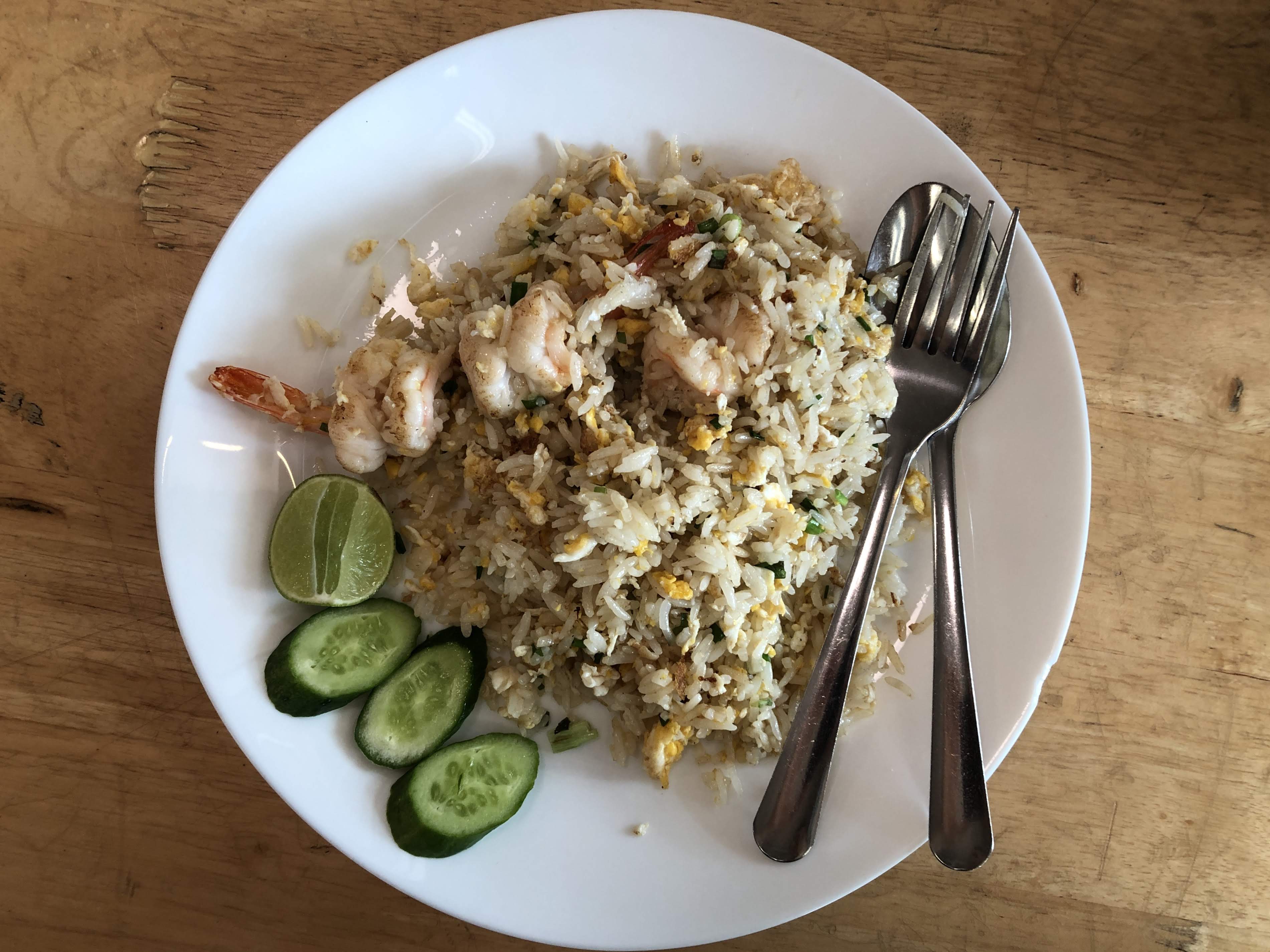 나는 새우볶음밥, 모닝글로리 볶음, 펩시콜라를 시켰다. 한국에서는 탄산음료를 마시지 않지만 방콕에 오면 즐겨 마신다. 워낙 태국요리가 기름지다 보니..