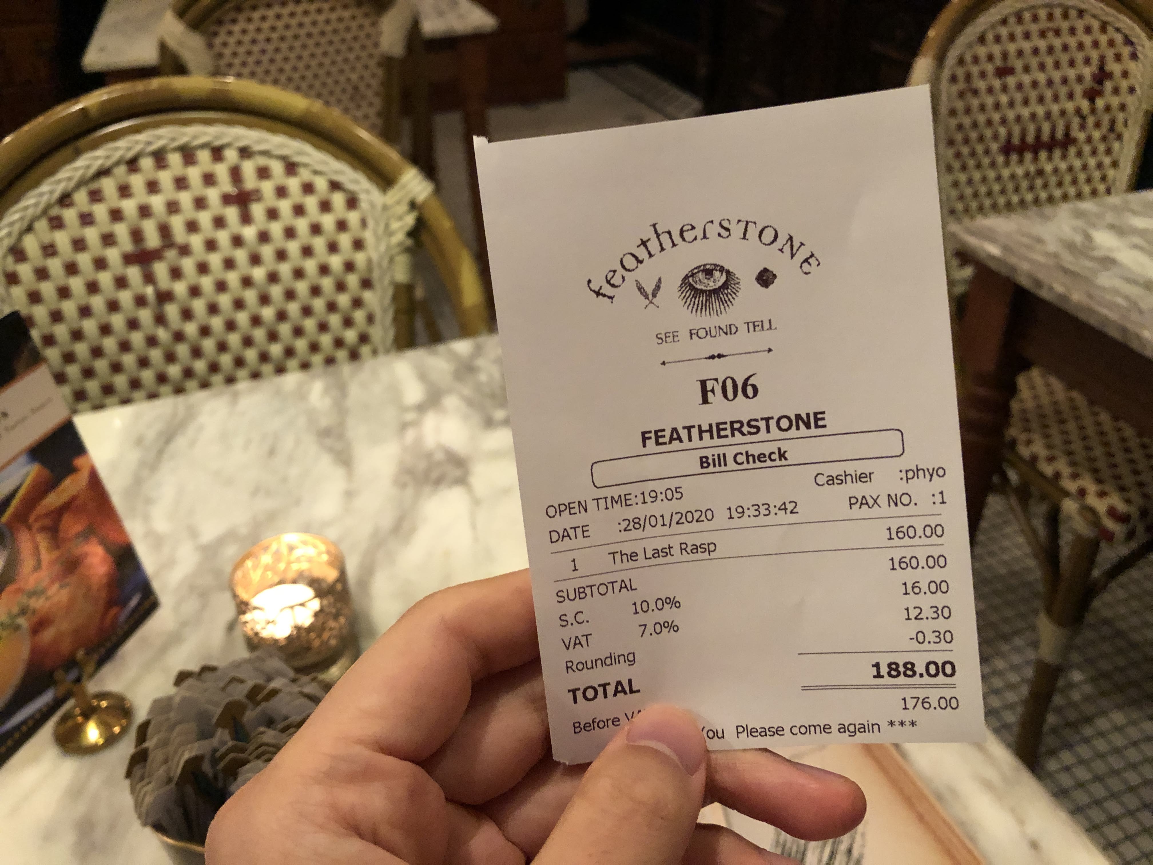 음료는 160바트고 서비스차지와 부가세가 별도로 총 17% 붙는다. 어쩐지 미소가 훌륭하다 했어. 자본주의 미소의 힘은 강하단 말이지!