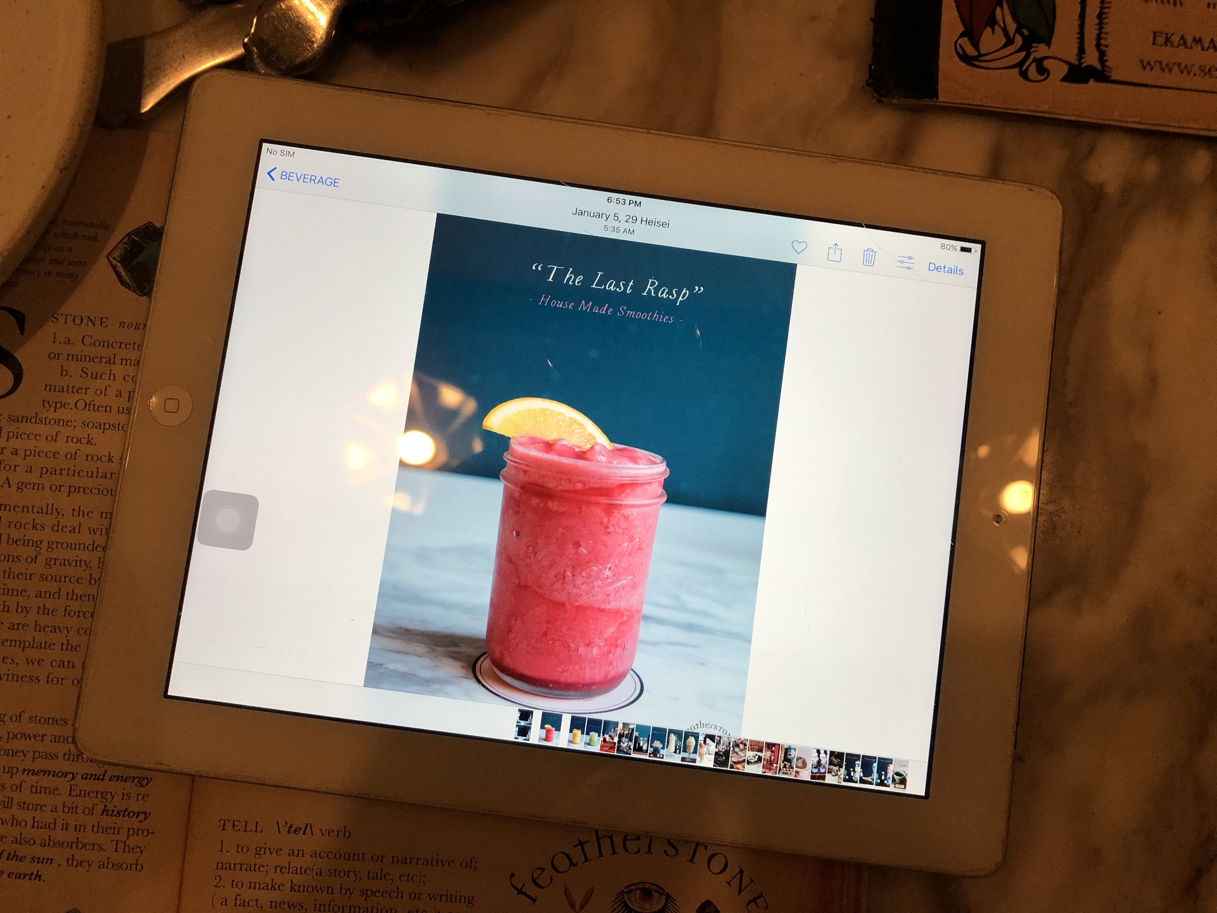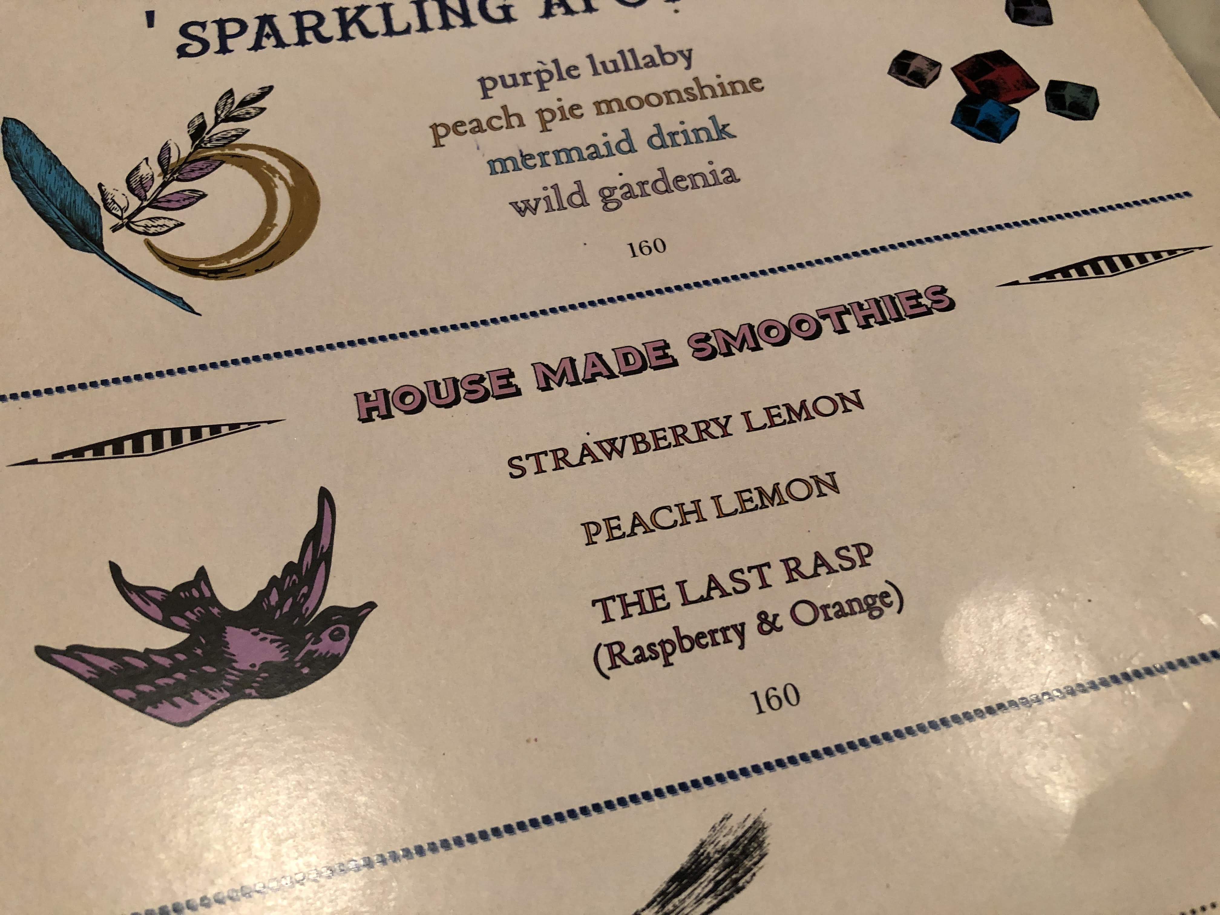 주문은 아이패드 메뉴판과 종이 메뉴판으로 할 수 있다. 사진으로 바로 볼 수 있어서 아이패드가 편했다. 커피를 마시면 속이 안 좋아져서 하우스메이드(!) 라즈베리 스무디를 시켰다.