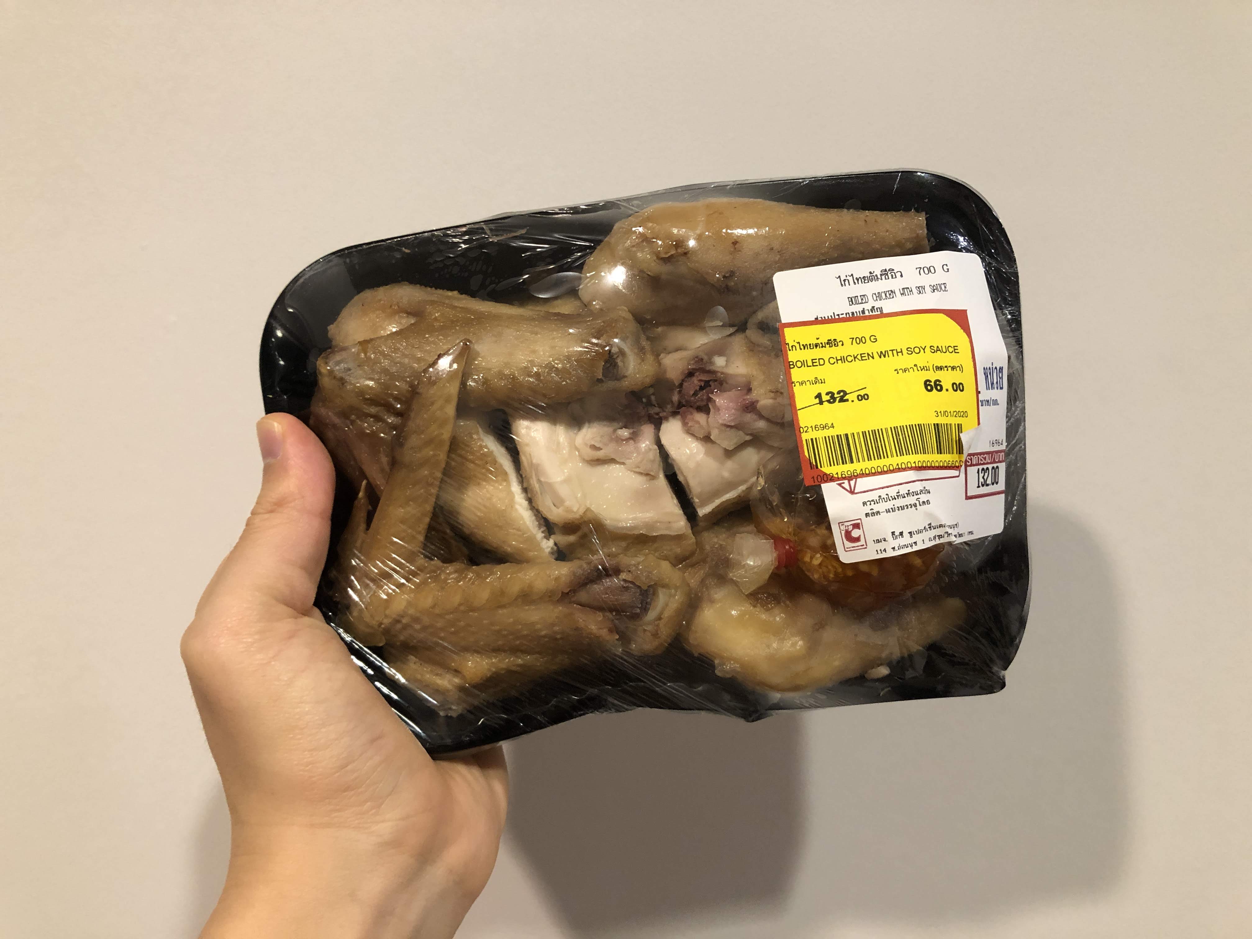 132바트 짜리 구운 치킨을 66바트에 샀다. 저녁에 시암에 볼일을 보러 갔다가 돌아오는 길에 빅씨(마트)에 들렀는데 폐점을 1시간 앞둔 9시에 도착했다. 한국의 마트와 비슷하게 폐점 시간이 가까워지면 신선식품의 가격이 내려갔다. 치킨 한마리가 66바트였다. 우리돈 2,500원이다. 혹시 상하진 않았을지 염려했으나 집에 와서 먹어보니 넘나 맛있는 것! 단지 소스에서.. 발냄새가 났다. 미쳐! 소스를 싱크대에 버렸는데 숙소 전체에서 발냄새가 진동한다. 이걸 사람 먹으라고 만든 것이란 말이냐~~~!