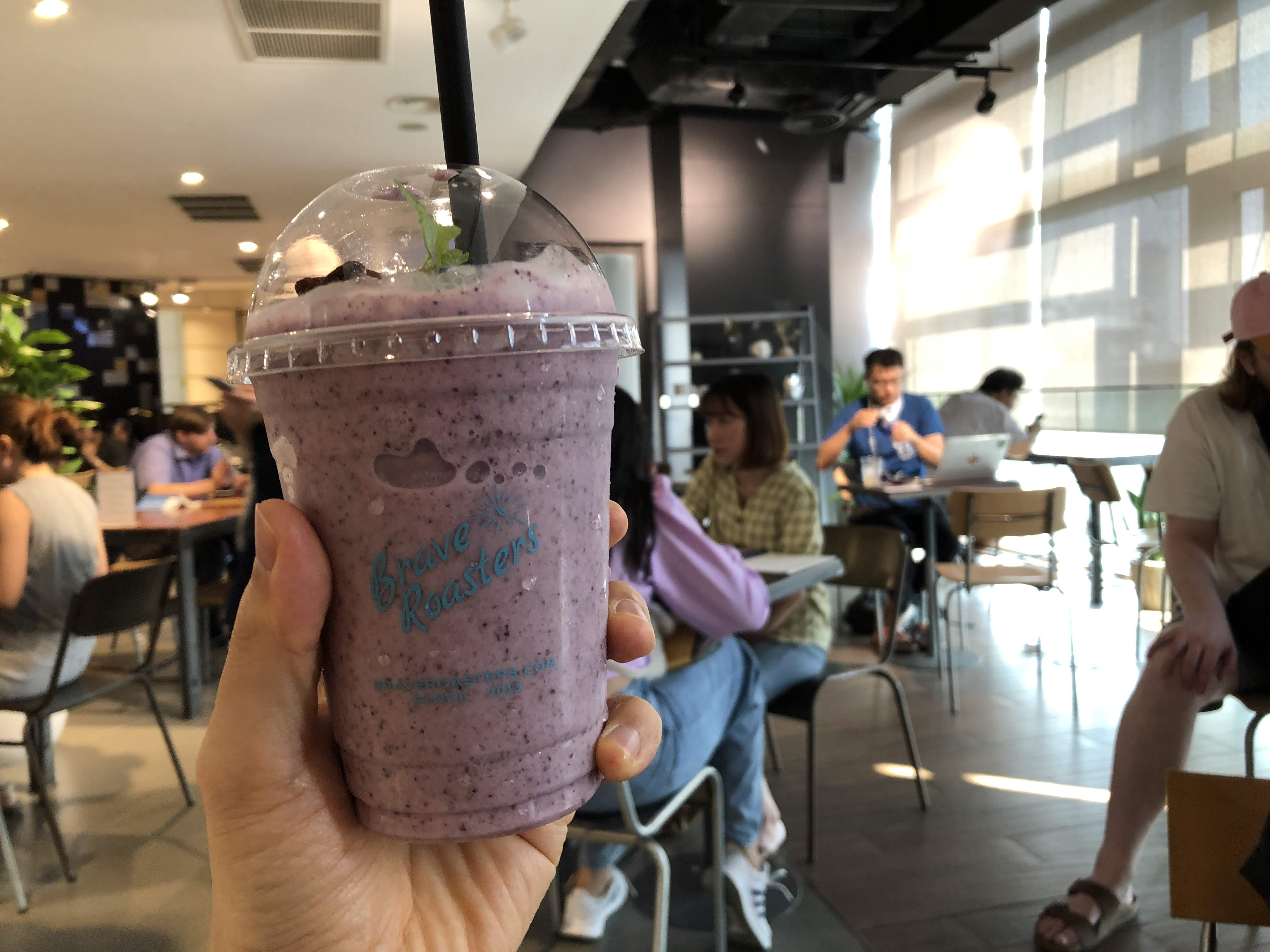 블루베리 요거트가 나왔다. 나쁘지 않은 맛이다. 방콕은 커피숍 가격이 한국의 서울보다 비슷하거나 비싸다. 무슨 배짱인고..