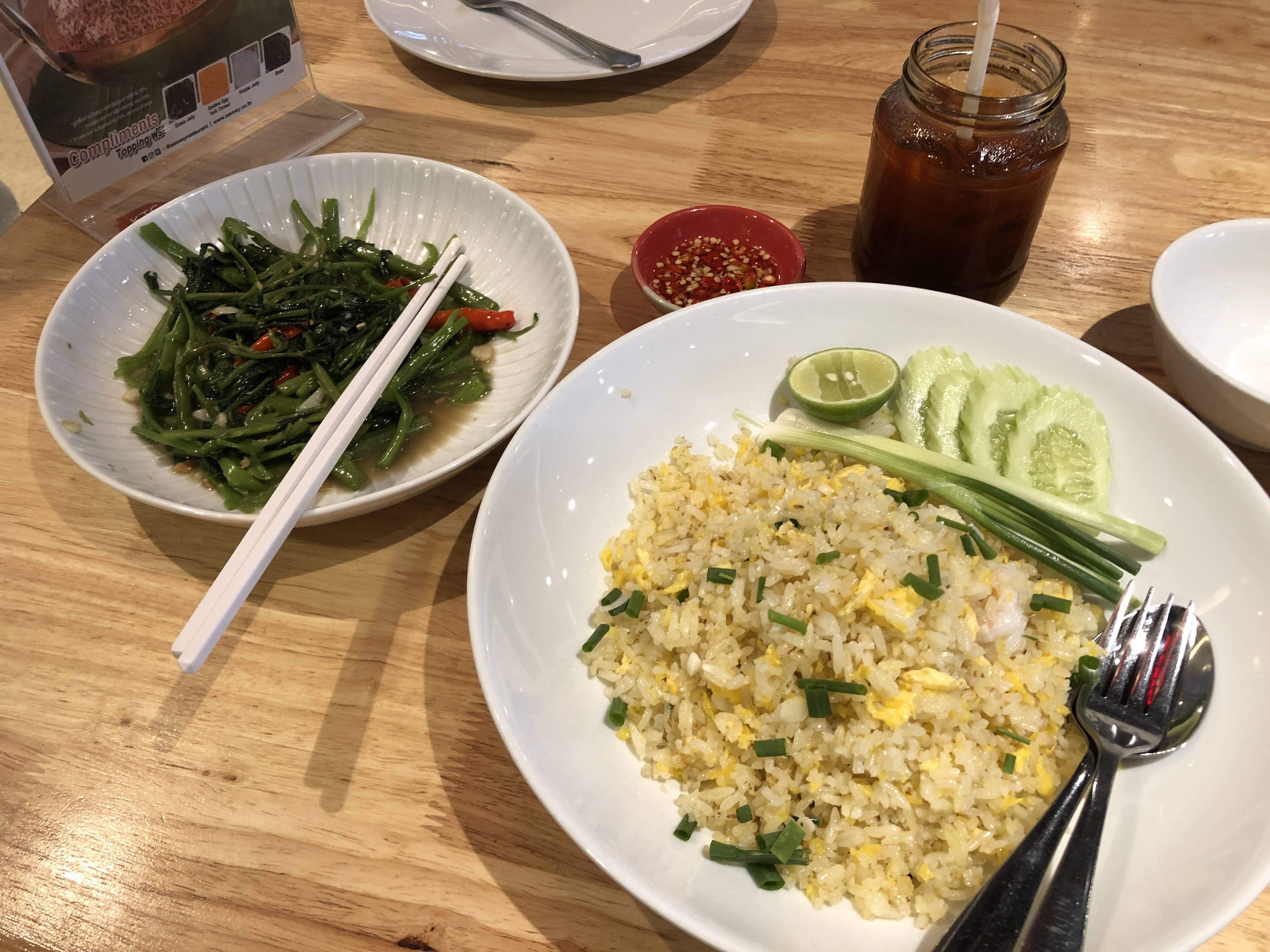 모닝글로리볶음(팍풍화이뎅)과 새우볶음밥(카우팟꿍)을 주문했다.