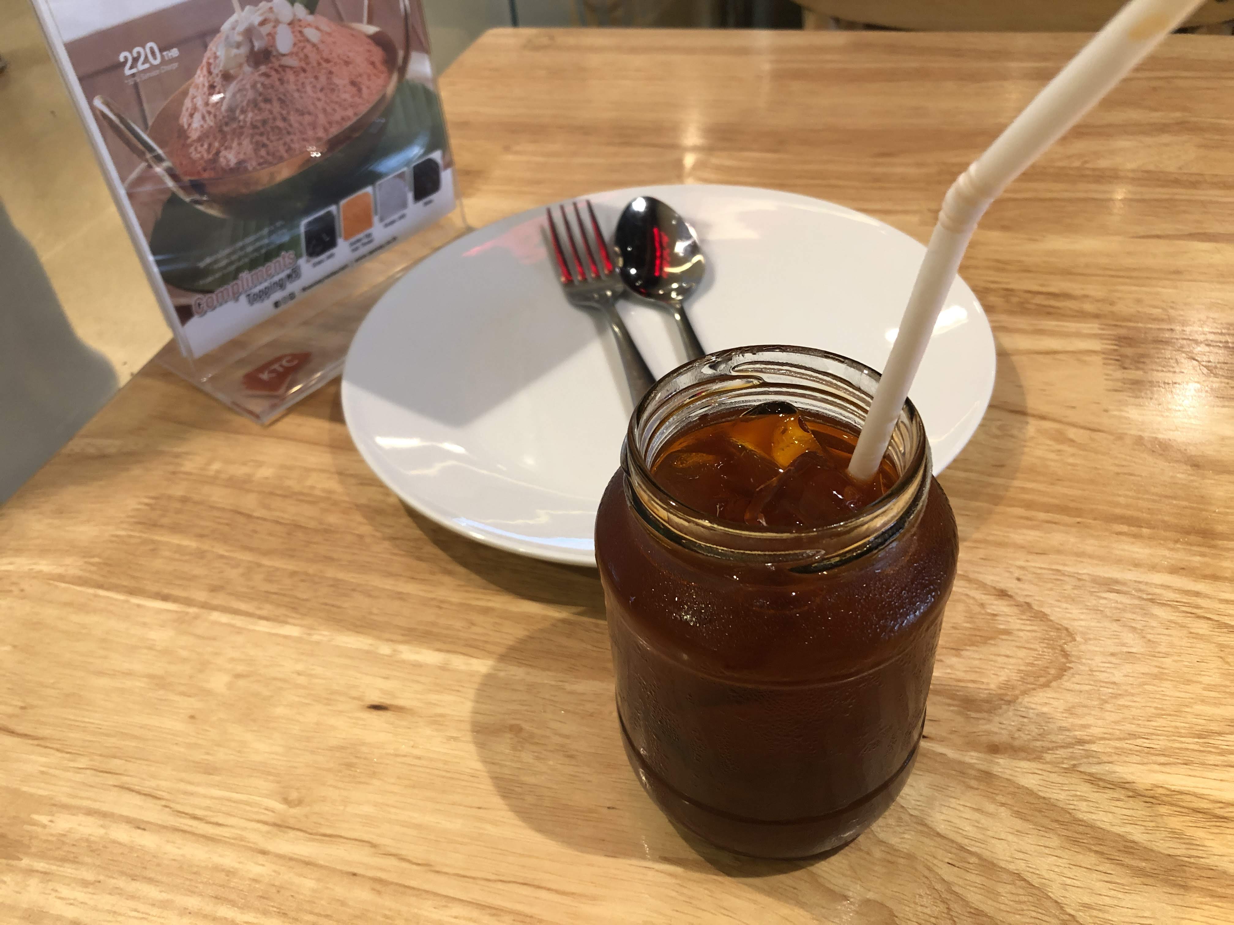 아차! 음료도 시켜야지? 음료는 타이 블랙 밀크티로! 가격이 일반 태국요리 로컬 식당에 비해 2배 정도 비싼데 위생과 맛을 생각하면 아깝지 않다.
