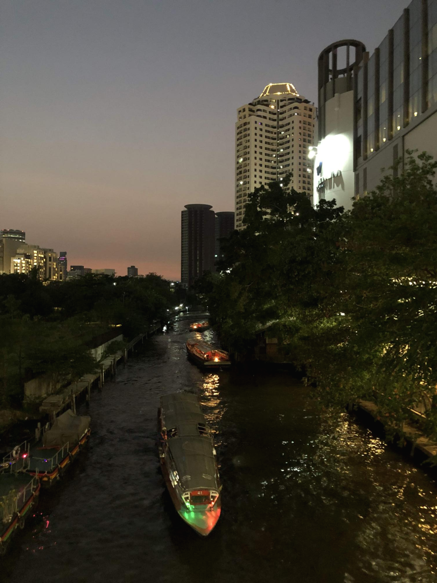 태국 정부는 랏차프라송 스카이워크를 줄여 R-Walk라고 명명했다. 칫롬 부근으로 연결된 스카이워크를 걷는 코스로 방콕의 도심야경을 보기에 딱 좋은 스폿이다. 나는 칫롬 게이손빌리지에서 시작해 플래티넘몰까지 이어지는 곳으로 이동했는데 너무 좋았다. 10분 거리로 부담없고 주변에 볼거리도 많다. 이 거리를 통해 볼 수 있는 것들을 정리해 보자면 다음과 같다. 센트럴플라자-빅씨슈퍼마켓-공원-배가 다니는 운하, 덤으로 방콕의 밤도로.. 형형색색 택시와 오토바이 그리고 승용차와 버스들이 엉켜 뿜어내는 에너지는 보는 이로 하여금 감탄을 자아낸다.