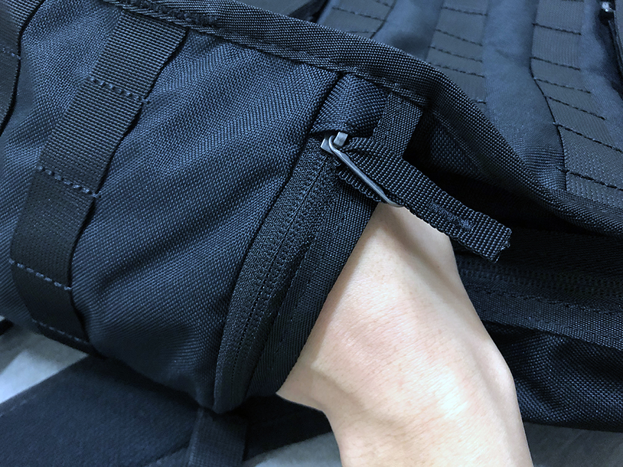 좌, 우로 물통을 수납할 수 있는 주머니가 있다.