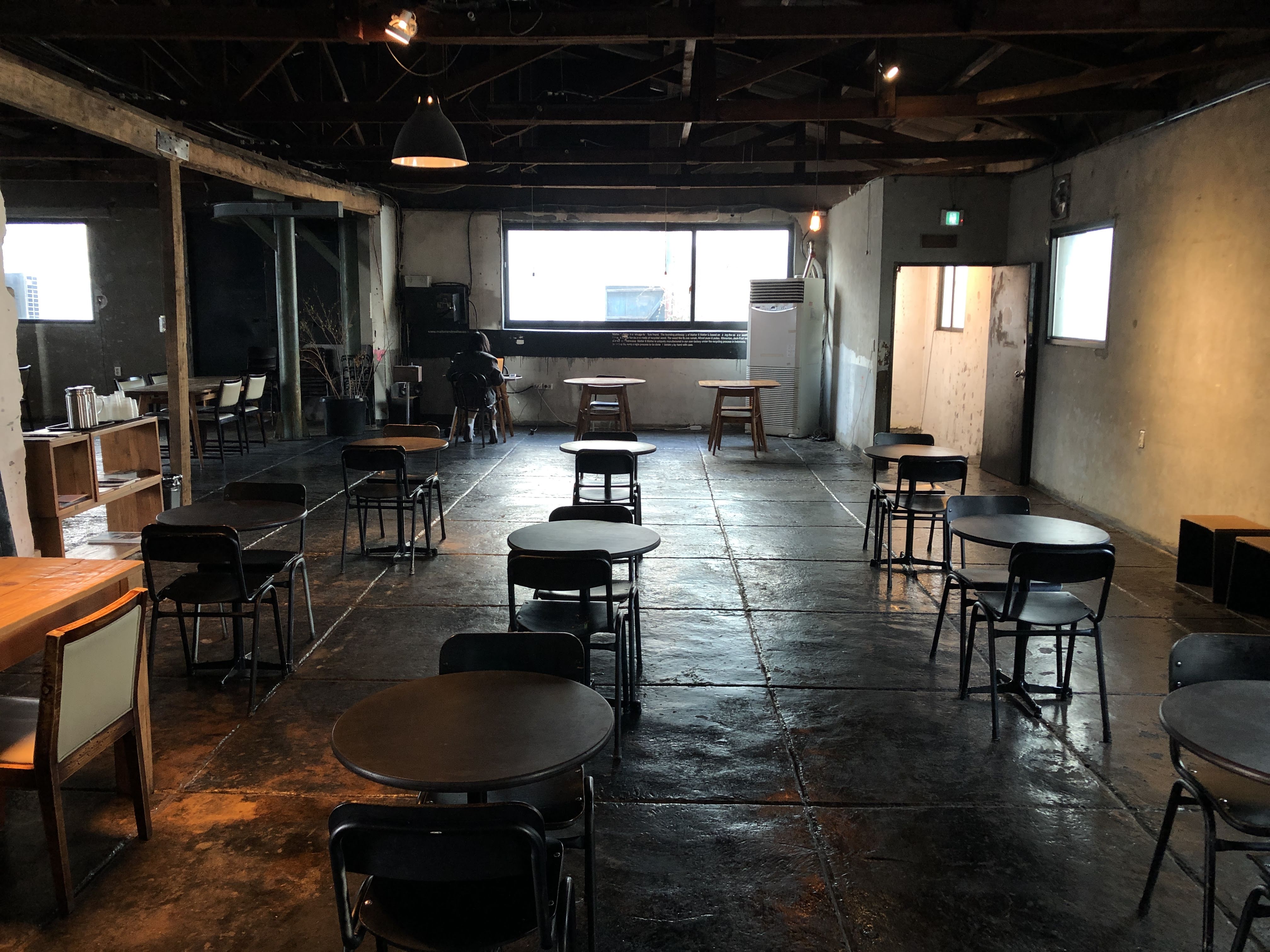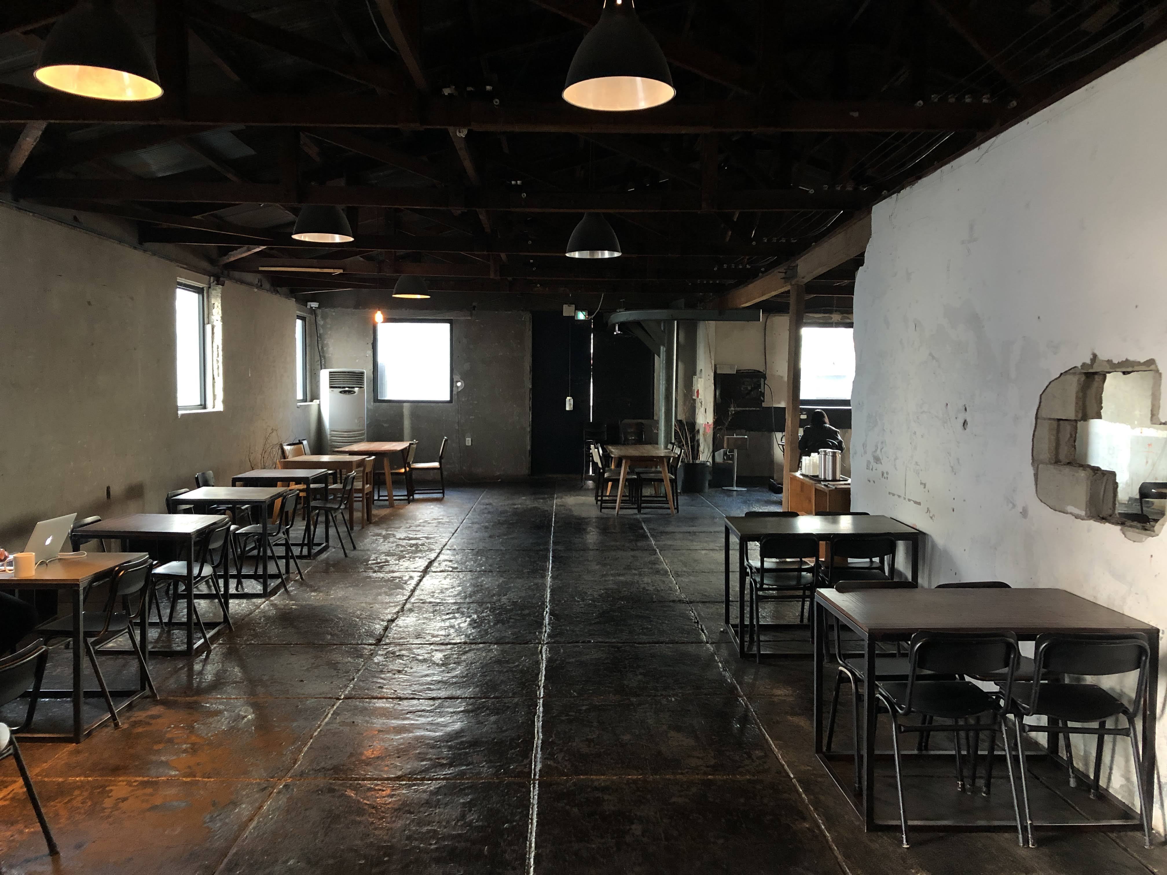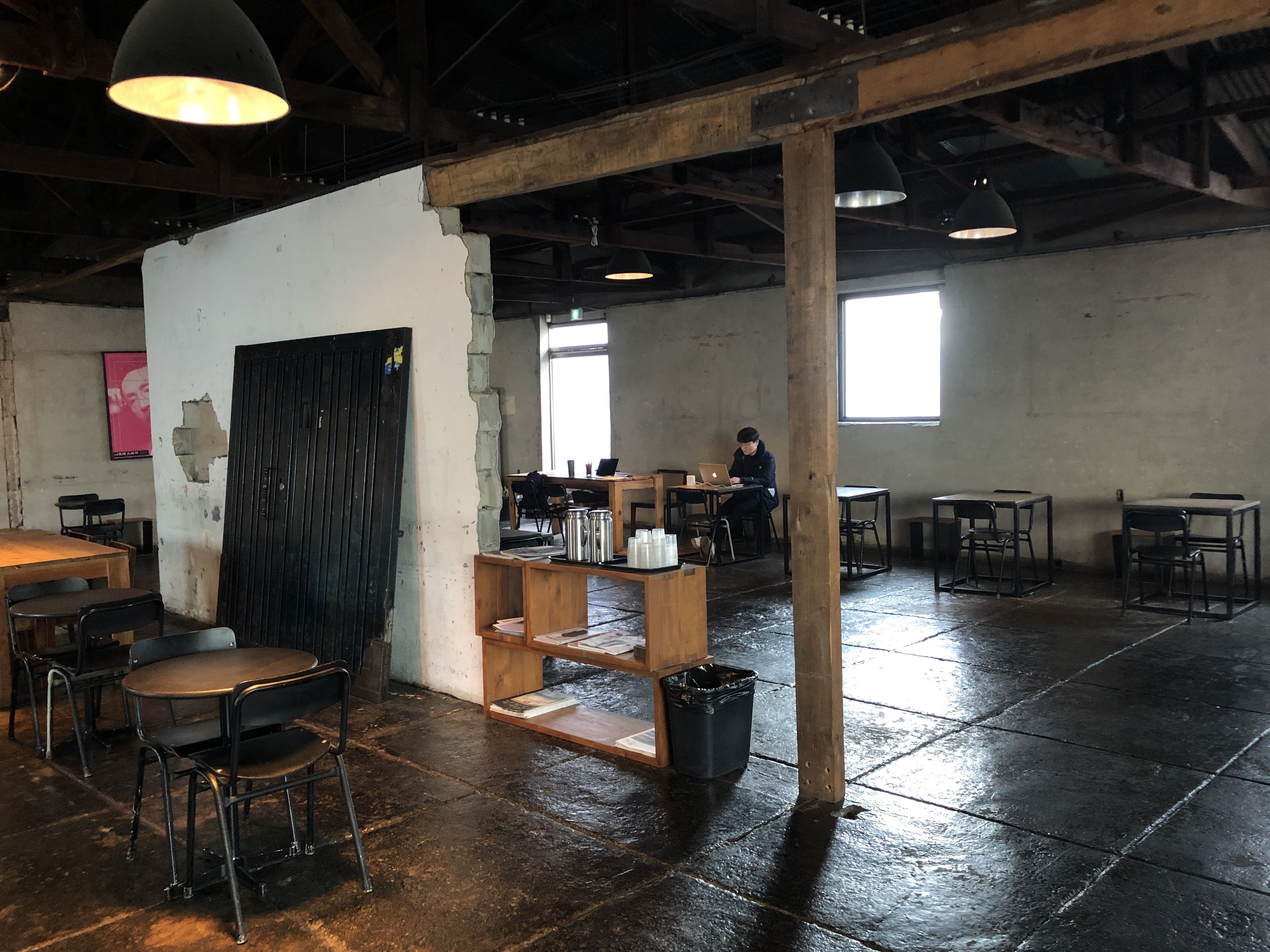 2층은 전쟁으로 인해 폭격을 입은 빌딩을 개조해서 만들었...은 뻥이다. 낡고 어두운 분위기가 넘나 좋은 것. 당장이라도 Cigarette After Sex의 노래가 흘러나올 것 같은 분위기다.