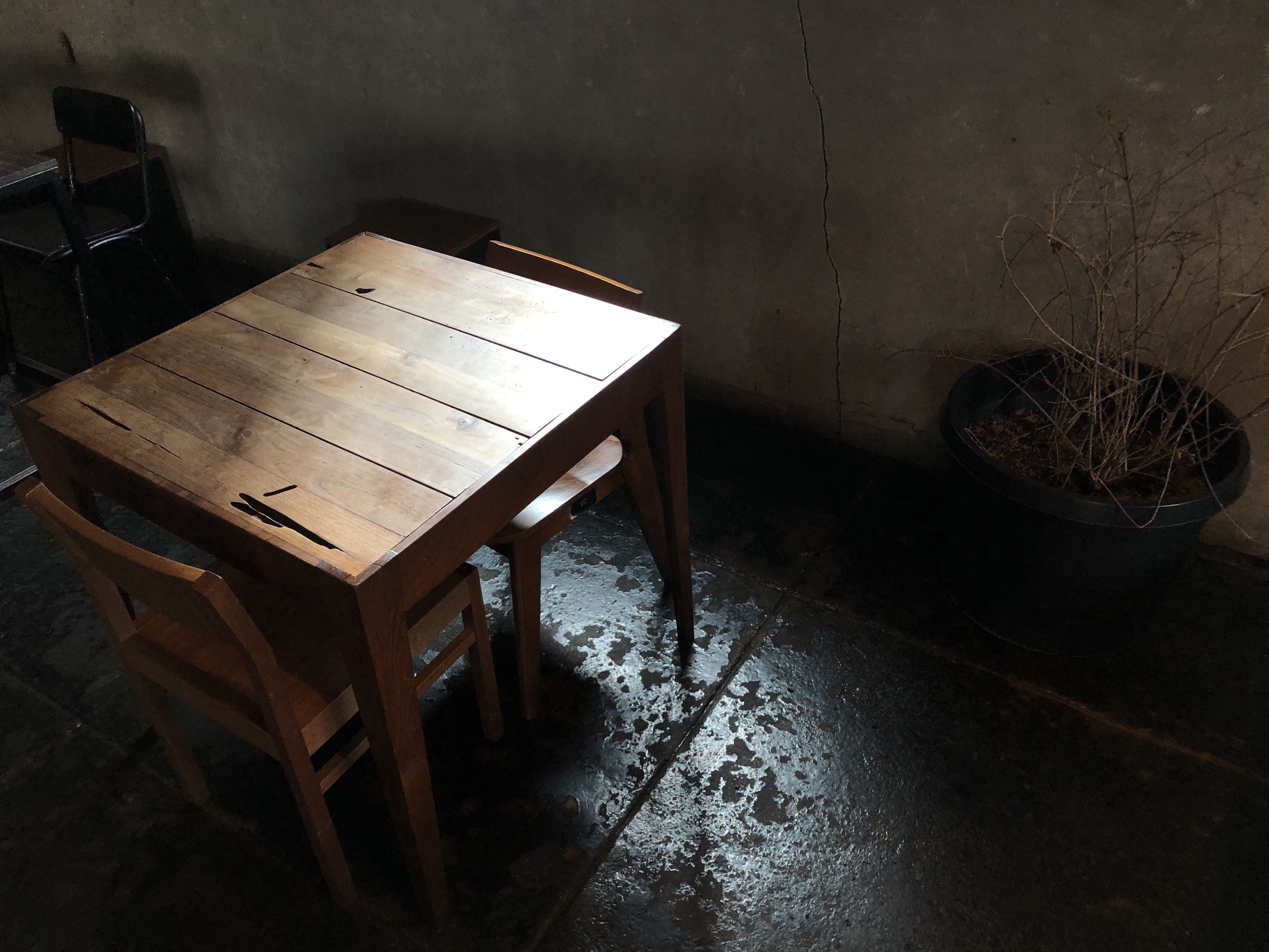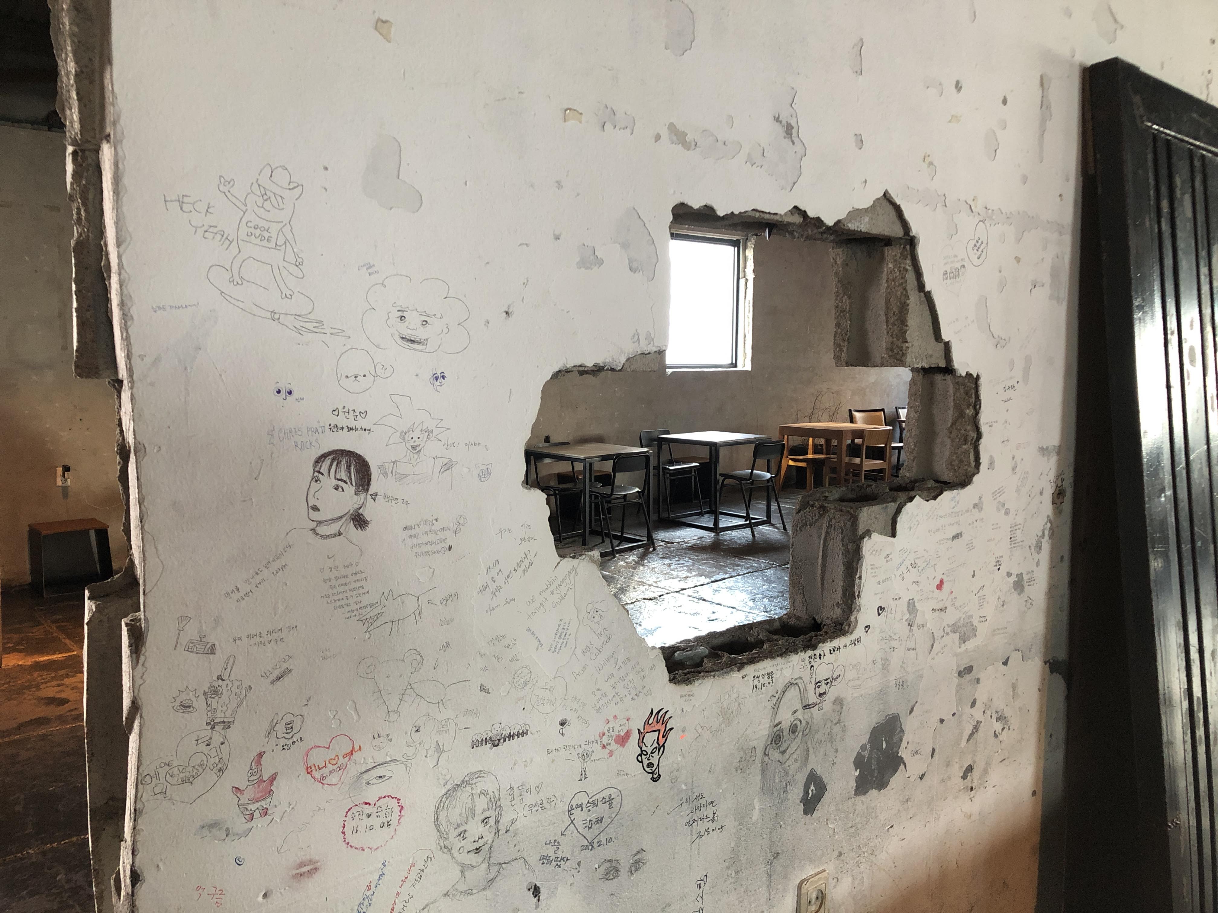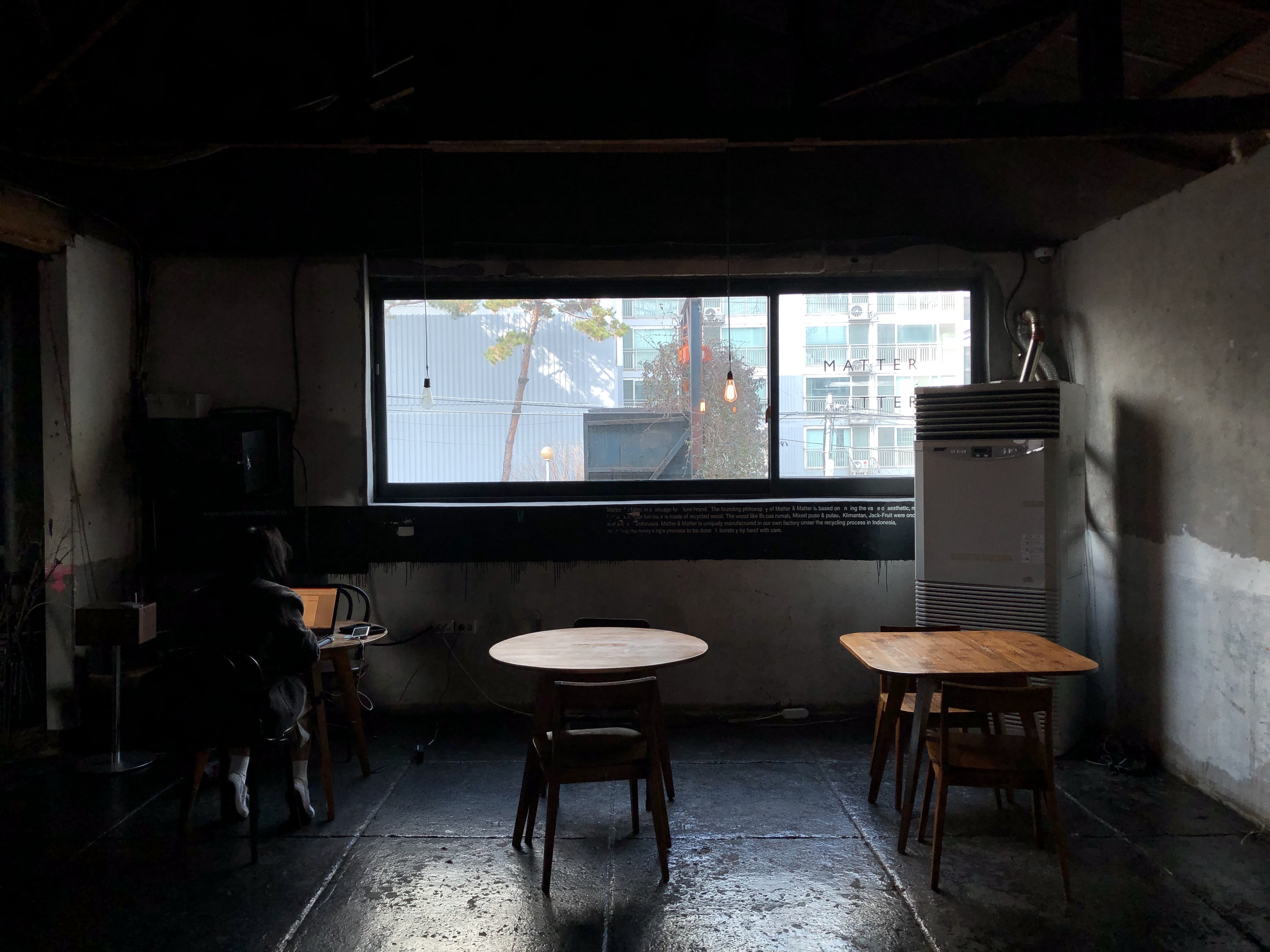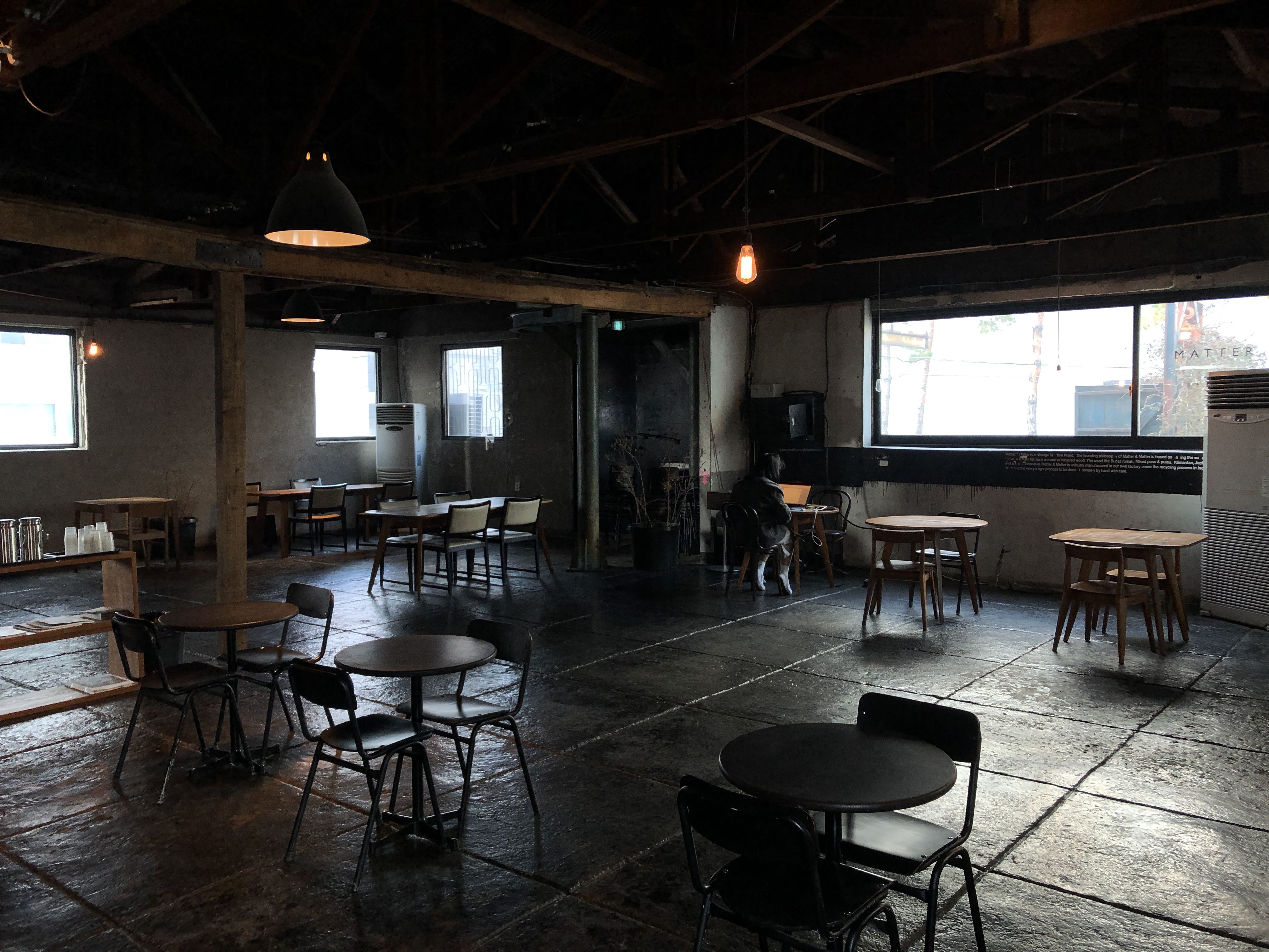 2층은 전쟁으로 인해 폭격을 입은 빌딩을 개조해서 만들었...은 뻥이다. 낡고 어두운 분위기가 넘나 좋은 것. 당장이라도 Cigarette After Sex의 노래가 흘러나올 것 같은 분위기다.