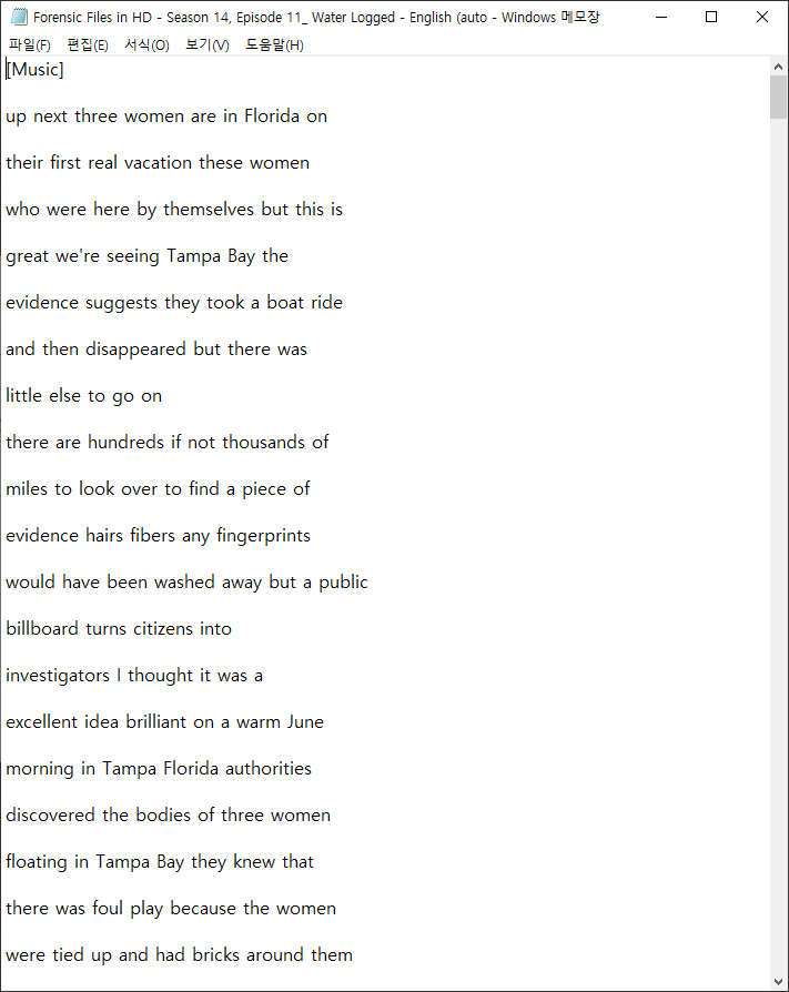 나는 범죄 다큐나 드라마에 관심이 많다. SBS 그것이알고싶다의 어머니라고 볼 수 있는 FilmRise의 Forensic Files를 즐겨본다. 나레이션을 맡은 분의 목소리도 좋고 대사도 내용도 탄탄해서 참 좋다. 우선 유튜브에서 동영상의 주소를 선택해 복사(Ctrl+V키)해 둔다.