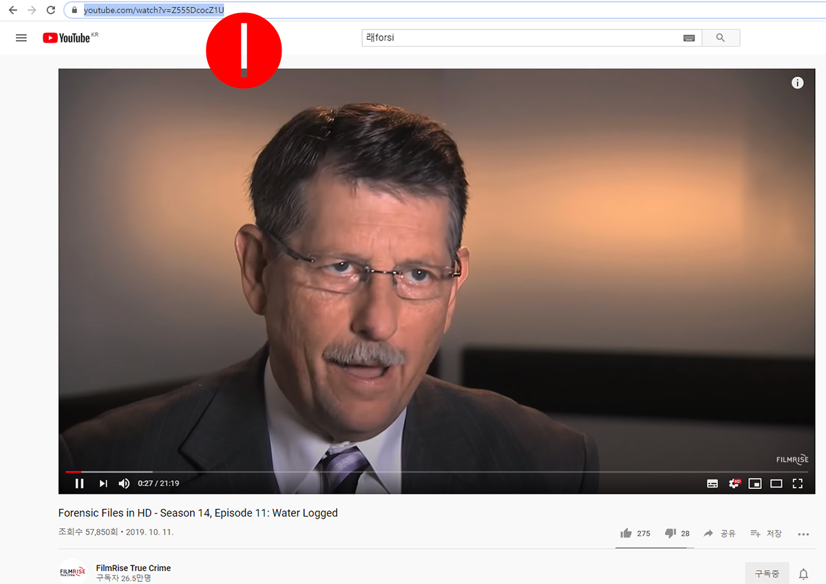 나는 범죄 다큐나 드라마에 관심이 많다. SBS 그것이알고싶다의 어머니라고 볼 수 있는 FilmRise의 Forensic Files를 즐겨본다. 나레이션을 맡은 분의 목소리도 좋고 대사도 내용도 탄탄해서 참 좋다. 우선 유튜브에서 동영상의 주소를 선택해 복사(Ctrl+V키)해 둔다.