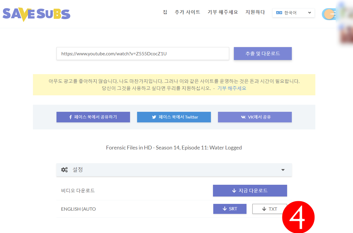 Youtube, Facebook, Viki, Dailymotion 등에서 자막 다운로드