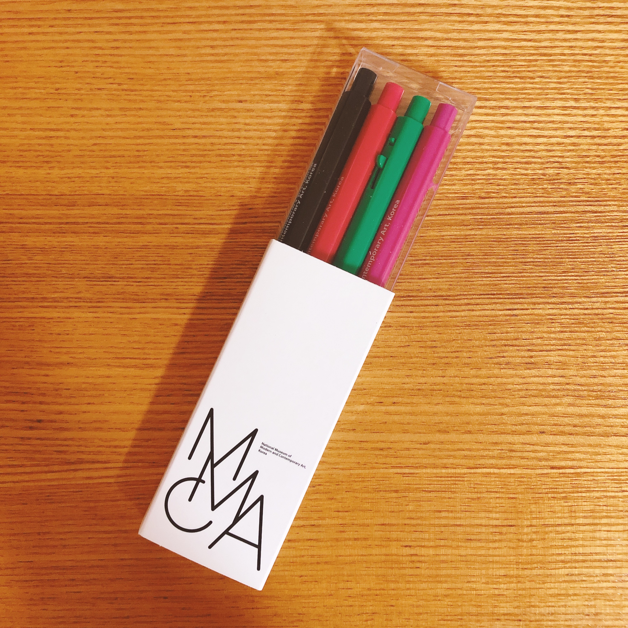 1시간 조금 넘게 전시를 보고 1층에 있는 미술 도서관에 갔다. 책, 엽서, 양말 등 미술이 첨가된 상품들이 즐비했다. 요즘 글을 쓰고 있어서 그런지 볼펜이 눈에 들어왔다. 모나미 볼펜인데 귀여웠다. 4개에 3천원이니 가격도 무척 합리적이었다.