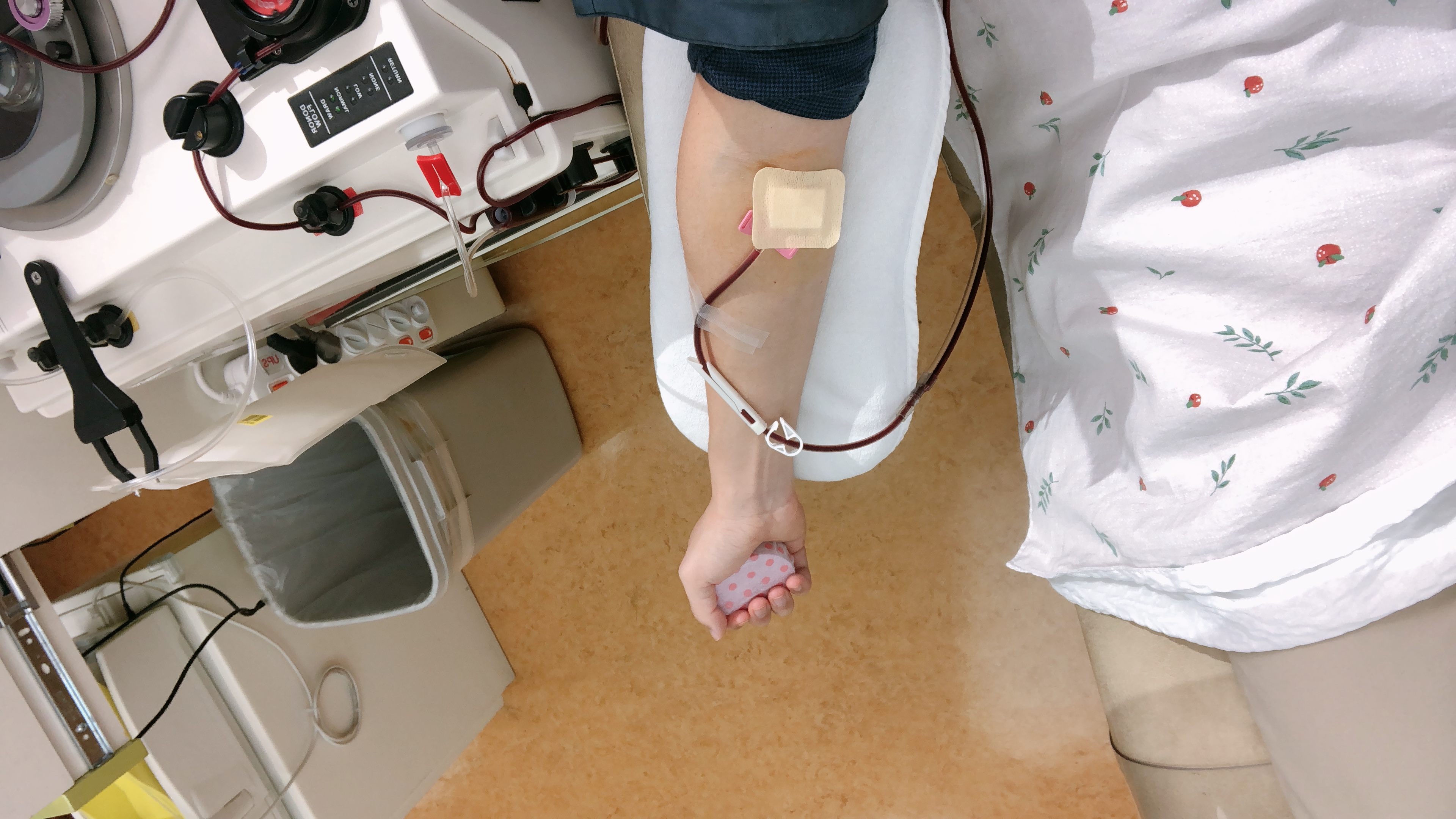 처음 헌혈을 하러 갔더니 컴퓨터 앞에서 정보를 입력하도록 했다. 헌혈을 하게 된 목적과 동기 그리고 병력 등 헌혈자의 필수 정보를 입력했다. 간호사분이 내 손가락에 바늘을 찔러 간단히 피검사도 실시했다. 비치된 과자와 음료수도 먹을 수 있었다. 전혈과 성분헌혈을 할 수 있다고 했다. 나는 올해 1월 태국여행을 다녀왔기 때문에 말라리아 위험 지역이라 전혈을 불가능했다. 혈소판 헌혈로 했다.
