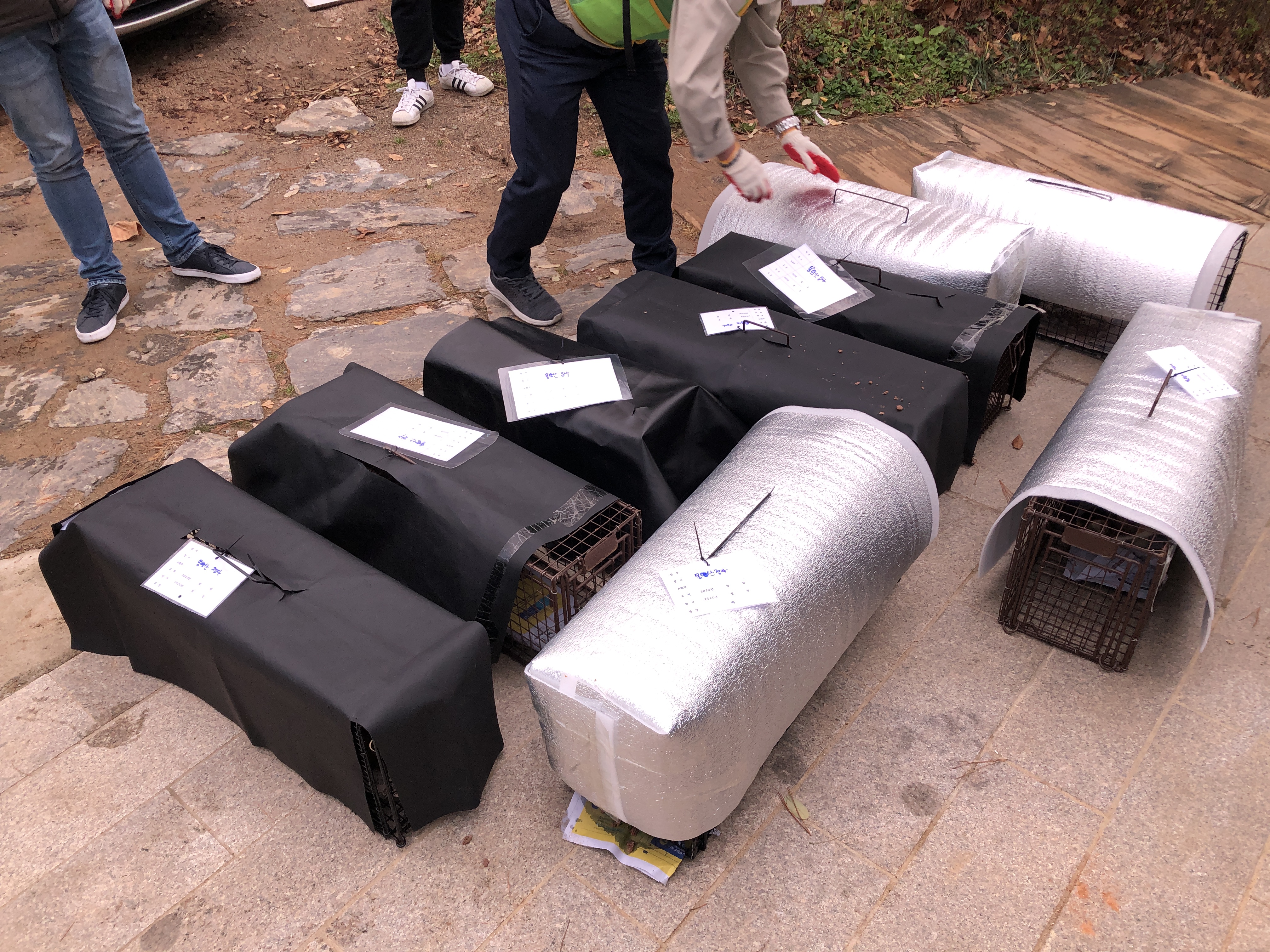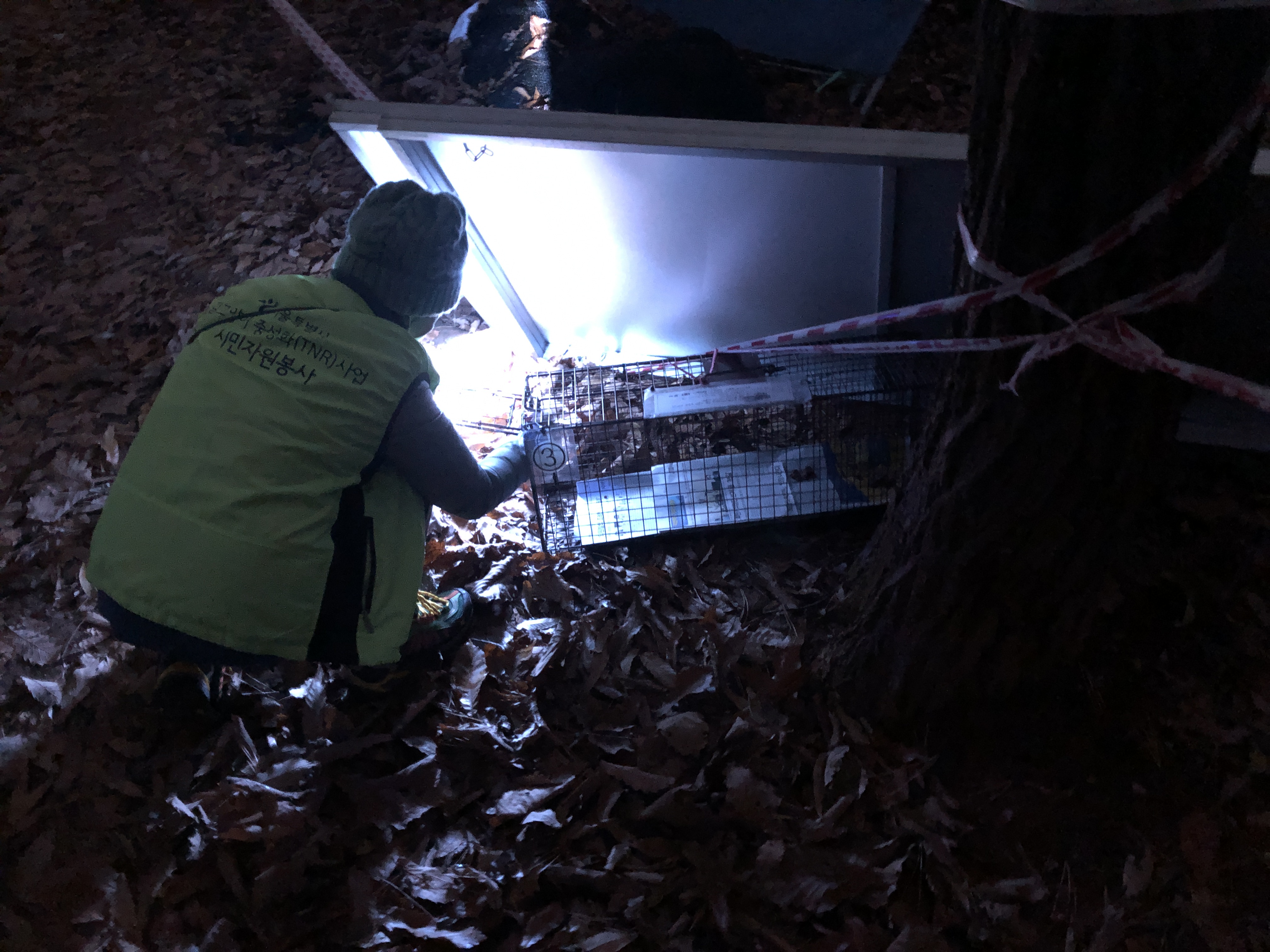 원래 포획을 해야 하는데 이미 봉사단체에서 나온 분들이 고양이들을 포획해두어 우리는 고양이가 담긴 철제구조물을 옮기거나 주변일을 돕는 활동을 했다. 저녁이 되자 김밥, 과자, 음료수 등 간식까지 챙겨줘 좋았다. 핫팩도 주셨다.