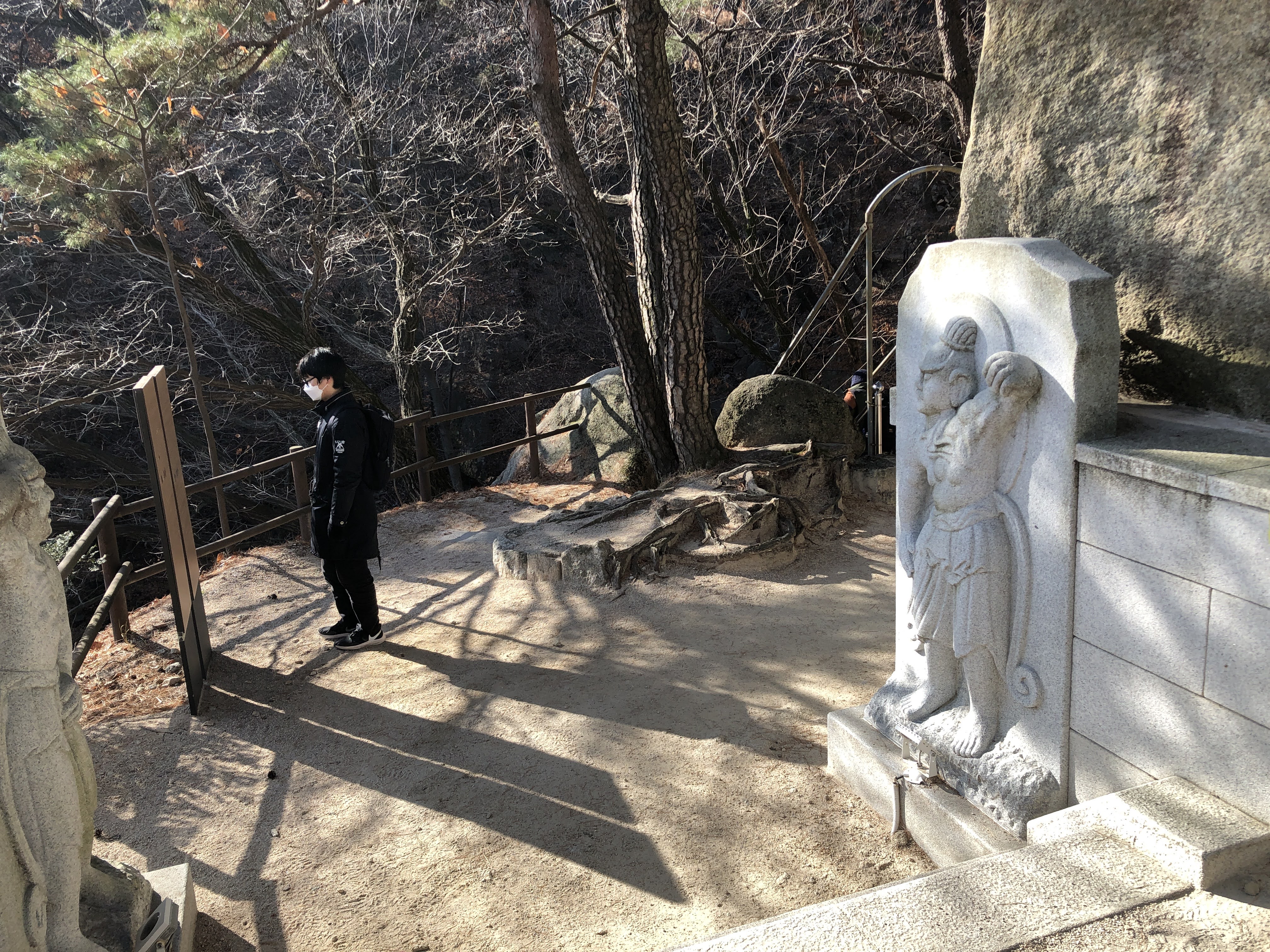 천축사 올라가는 길에 특이한 비석들이 세워져 있었다. 아래에 서있는 분께 양해를 구하고 사진 촬영을 부탁했다. 그리고...